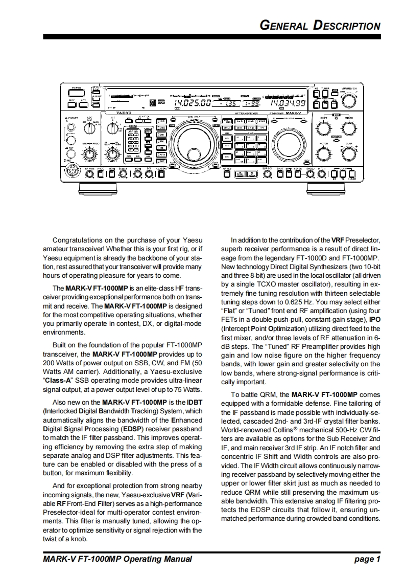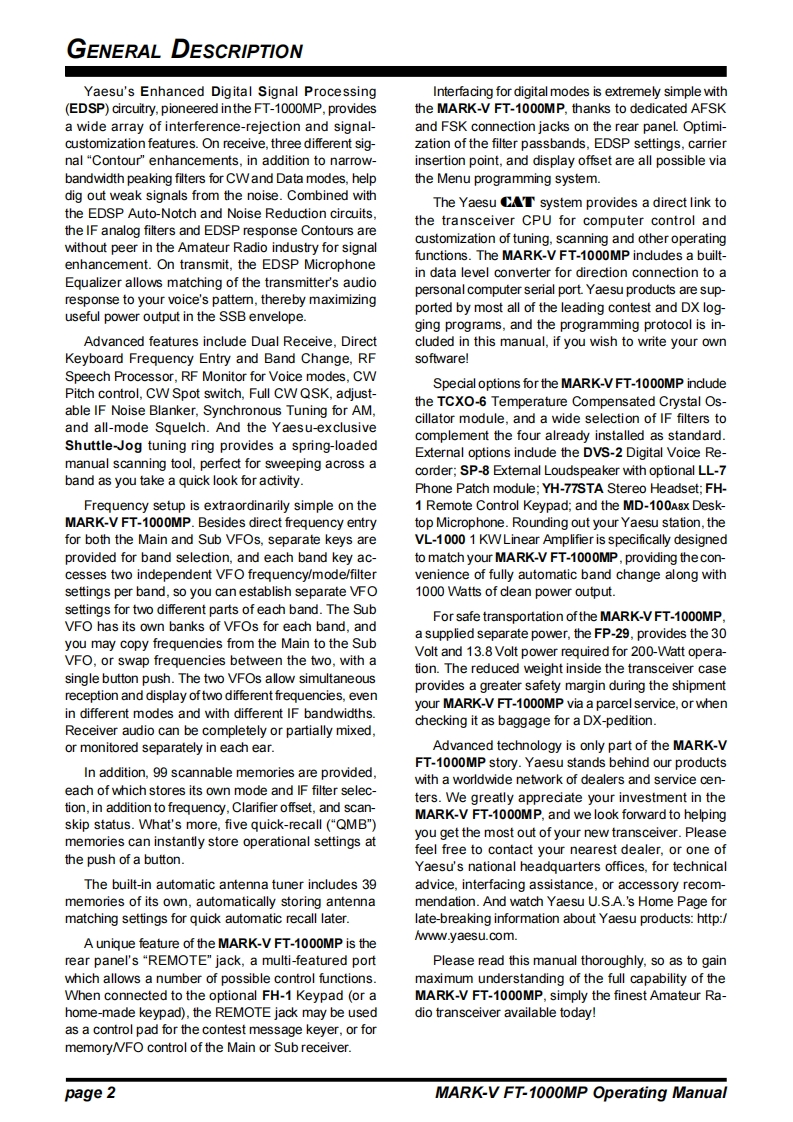 YAESUMARK-VFT-1000MPHE TRANSCEIVEROperating ManualDownloaded byRadioAmateur.EU品Q口云9060-$少1000VERTEX STANDARD CO.,LTD.4-8-8 Nakameguro,Meguro-Ku,Tokyo 153-8644,JapanVERTEX STANDARDUS Headquarters17210 Edwards Rd.,Cerritos,CA 90703,U.S.A.International Division8350 N.W.52nd Terrace,Suite 201,Miami,FL 33166.U.S.AYAESU EUROPE B.V.P.O.Box 75525.1118 ZN Schiphol.The NetherlandsYAESU UK LTD.Unit 12.Sun Valley Business Park.Winnall CloseWinchester,Hampshire.SO23 0LB.U.K.VERTEX STANDARD HK LTD.Unit 5,20/F.,Seaview Centre,139-141 Hoi Bun Road,Kwun Tong.Kowloon,Hong Kong