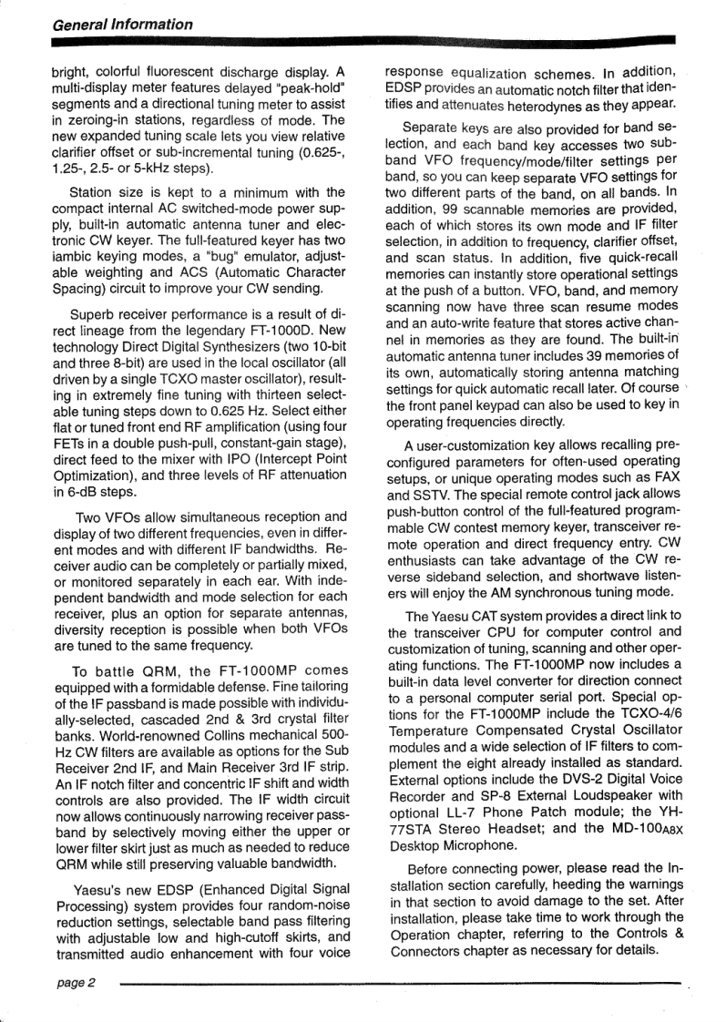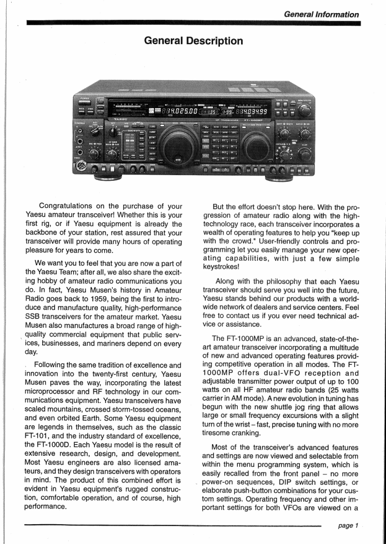 YAEFT-1000MPOPERATINGMANUAL02YAESU MUSEN CO.,LTD.1-20-2 Shimomaruko,Ota-Ku.Tokyo,146.JapanYAESU U.S.A.17210 Edwards Rd.,Cerritos,CA 90703.U.S.A.YAESU INTERNATIONAL SALES,(Caribbean,Central So.America)7270 NW 12th St.,Suite 320,Miami,FL 33126,U.S.A.YAESU EUROPE B.V.Snipweg 3,1118DN Schiphol.The NetherlandsYAESU UK LTD.Unit 2,Maple Grove Business CentreLawrence Rd.,Hounslow,Middlesex,TW4 6DR.U.K.YAESU GERMANY GmbHAm Kronberger Hang 2.D-65824 Schwalbach,GermanyYAESU HK LTD.11th Floor Tsim Sha Tsui Centre,68 Mody Rd.,Tsim Sha Tsui East Kowloon.Hong Kong