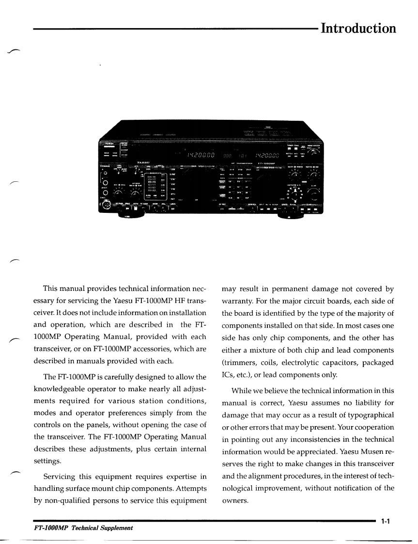 YAESUFT-1000MPHF TransceiverTechnical SupplementYAESU MUSEN CO.,LTD.1-20-2 Shimomaruko,Ota-Ku,Tokyo,146,JapanYAESU U.S.A.17210 Edwards Rd.,Cerritos,CA 90703.U.S.A.YAESU INTERNATIONAL SALES,(Caribbean,Central So.America)7270 NW 12th St..Suite 320,Miami,FL 33126,U.S.AYAESU EUROPE B.V.Snipweg 3,1118DN Schiphol.The NetherlandsYAESU UK LTD.Unit 2,Maple Grove Business Centre.Lawrence Rd.,Hounslow,Middlesex,TW4 6DR,U.KYAESU GERMANY GmbHAm Kronberger Hang 2,D-65824 Schwalbach,GermanyYAESU HK LTD.11th Floor Tsim Sha Tsui Centre,66 Mody Rd.,Tsim Sha Tsui East,Kowloon,Hong Kong