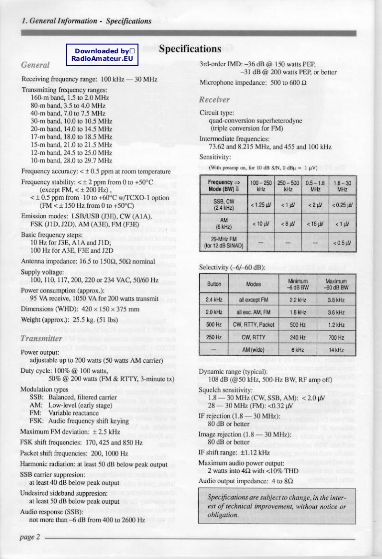 FT-1000OPERATINGMANUALYAESU MUSEN CO.,LTD.C.P.O.BOX 1500,TOKYO.JAPANYAESU U.S.A.17210 Edwards Rd.Cerritos,California,90701 U.S.A.Downloaded by☐YAESU EUROPE B.V.RadioAmateur.EUSnipweg 3.1118AA Sckiphol The NETHERLANDS