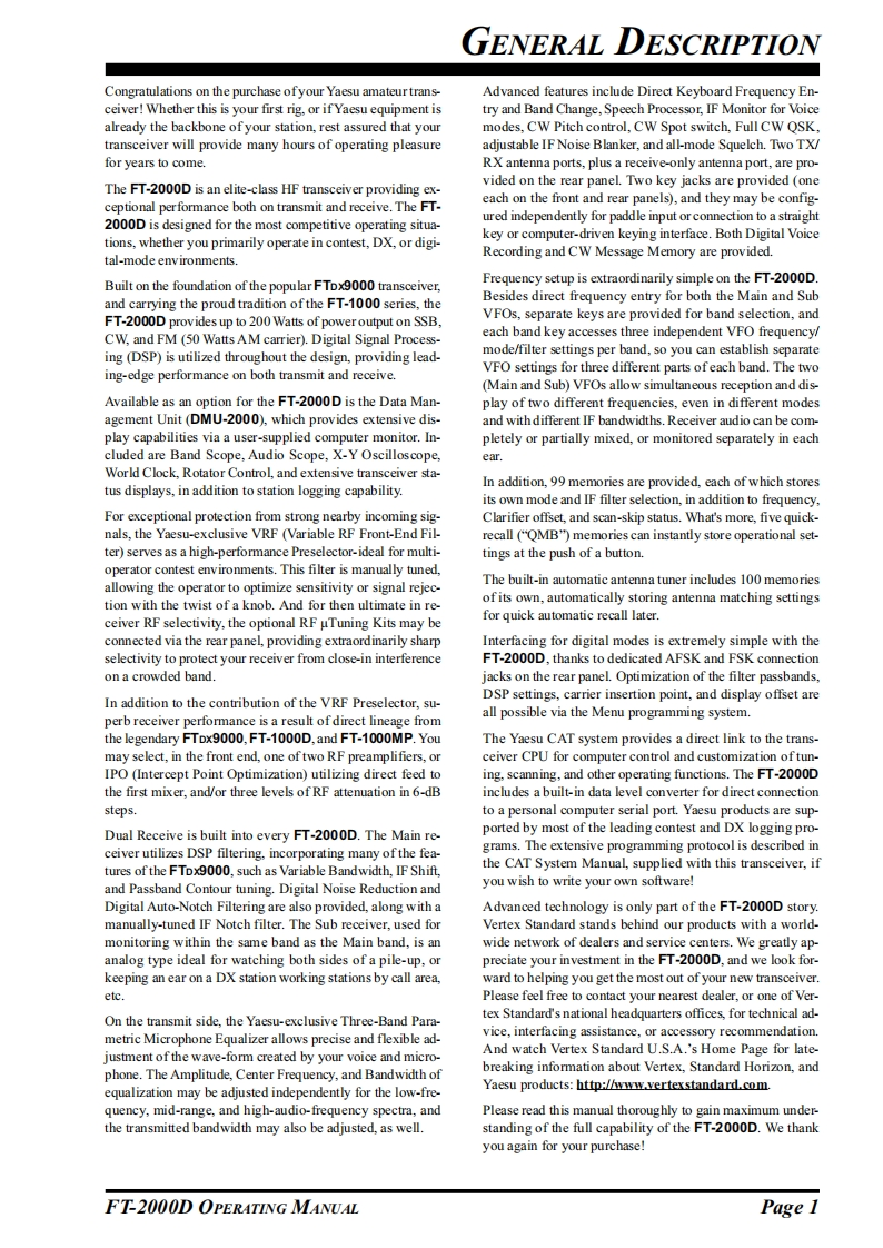 YAESUHF/50 MHZ TRANSCEIVERFT-2000DOPERATING MANUALYAB8可o IDownloaded byRadioAmateur.EUVERTEX STANDARD CO.,LTD.4-8-8 Nakameguro,Meguro-Ku,Tokyo 153-8644.JapanVERTEX STANDARDUS Headquarters10900 Walker Street.Cypress,CA 90630.U.S.A.YAESU EUROPE B.V.P.O.Box 75525,1118 ZN Schiphol,The NetherlandsYAESU UK LTD.Unit 12,Sun Valley Business Park,Winnall CloseWinchester.Hampshire.SO23 OLB.U.K.VERTEX STANDARD HK LTD.Unit 5,20/F.Seaview Centre,139-141 Hoi Bun Road,Kwun Tong,Kowloon,Hong KongVERTEX STANDARD(AUSTRALIA)PTY.,LTD.Normanby Business Park,Unit 14/45 Normanby RoadNotting Hill 3168,Victoria,Australia