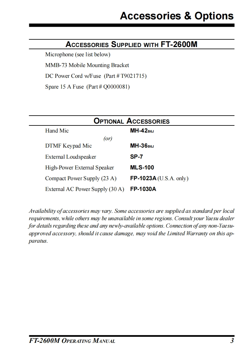 YAESU144 MHz BAND FM TRANSCEIVERFT-2600MOPERATING MANUAL200AN0画UVERTEX STANDARD CO.,LTD4-8-8 Nakameguro,Meguro-Ku,Tokyo 153-8644,JapanVERTEX STANDARDUS Headquarters17210 Edwards Rd.,Cerritos,CA 90703,U.S.A.International Division8350 N.W.52nd Terrace,Suite 201,Miami,FL 33166,U.S.A.YAESU EUROPE B.V.P.O.Box 75525,1118 ZN Schiphol,The NetherlandsYAESU UK LTD.Unit 12,Sun Valley Business Park,Winnall CloseWinchester,Hampshire,S023 0LB,U.K.VERTEX STANDARD HK LTD.Unit 5,20/F.,Seaview Centre,139-141 Hoi Bun Road,Kwun Tong,Kowloon,Hong Kong