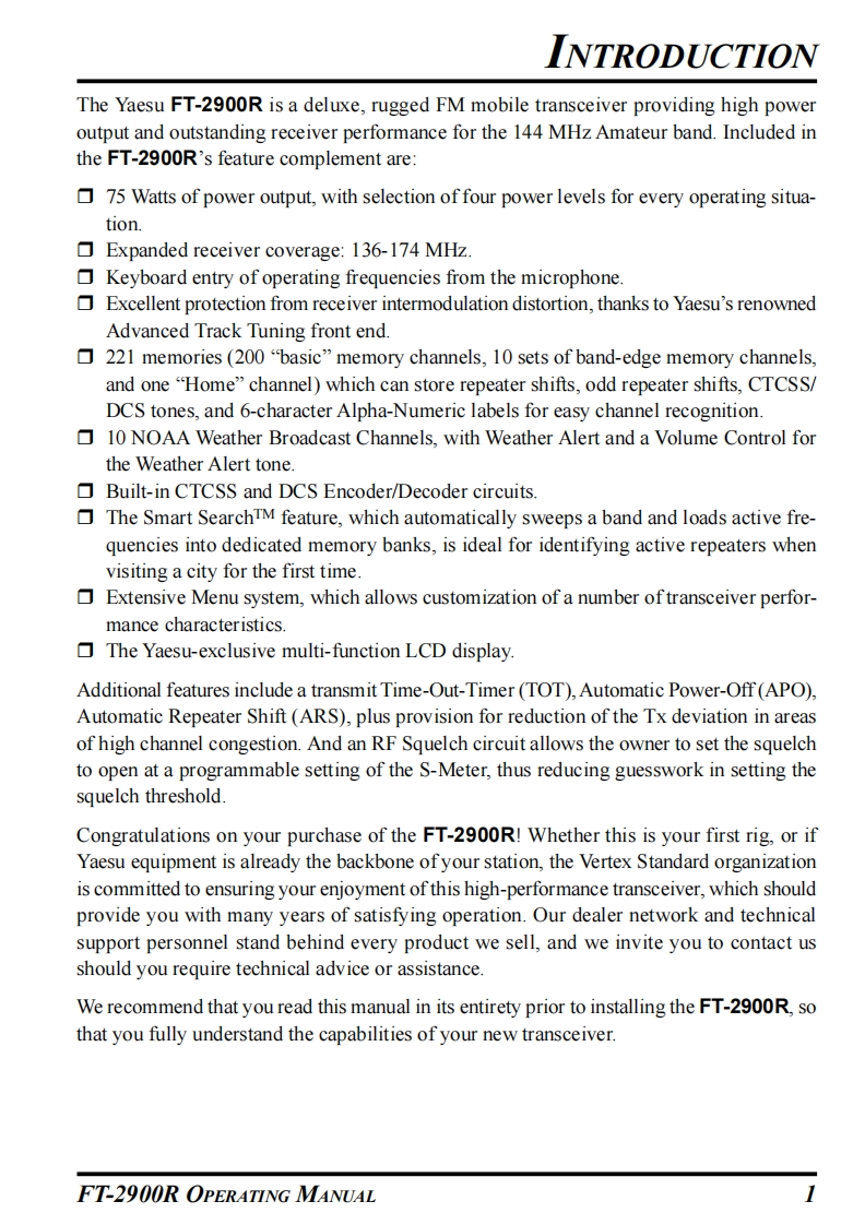 YAESUFM TRANSCEIVERFT-2900ROPERATING MANUALw种品"6S0199VFOL器VERTEX STANDARD CO.,LTD.4-8-8 Nakameguro,Meguro-Ku,Tokyo 153-8644,JapanVERTEX STANDARDUS Headquarters10900 Walker Street,Cypress,CA 90630,U.S.AYAESU UK LTD.Unit 12,Sun Valley Business Park,Winnall CloseWinchester,Hampshire,SO23 0LB,U.K.VERTEX STANDARD HK LTDUnit 5,20/F.,Seaview Centre,139-141 Hoi Bun Road,Kwun Tong,Kowloon,Hong KongVERTEX STANDARD(AUSTRALIA)PTY.,LTD.Normanby Business Park,Unit 14/45 Normanby RoadNotting Hill 3168,Victoria,Australia