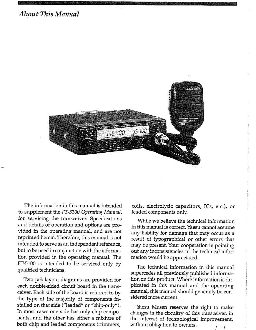 FT-5100TechnicalSupplementASCENEFT-510045000¥3500YAESU MUSEN CO.,LTD.C.P.O.Box 1500,Tokyo,JapanYAESU U.S.A.17210 Edwards Rd.,Cerritos,California 90703Downloaded byU.S.A.YAESU EUROPE B.V.RadioAmateur.EUSnipweg 3.1118AA Schiphol,The NetherlandsYAESU UK LTD.Unit 2,Maple Grove Business CentreLawrence Rd.,Hounslow,Middlesex TW4 6DR,UK