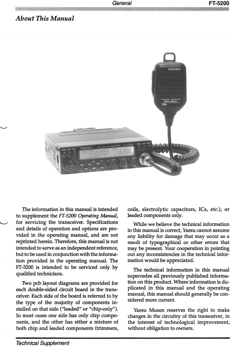 FT-5200TechnicalSupplementYAESUm288eYAESU BAND FM FT-52004000096000Downloaded by□RadioAmateur.EUYAESU MUSEN CO.,LTD.C.P.O.Box 1500,Tokyo,JapanYAESU U.S.A.17210 Edwards Rd.,Cerritos,CA 90701,U.S.A.YAESUYAESU EUROPE B.V.Snipweg 3,1118AA Schiphol,The Netherlands