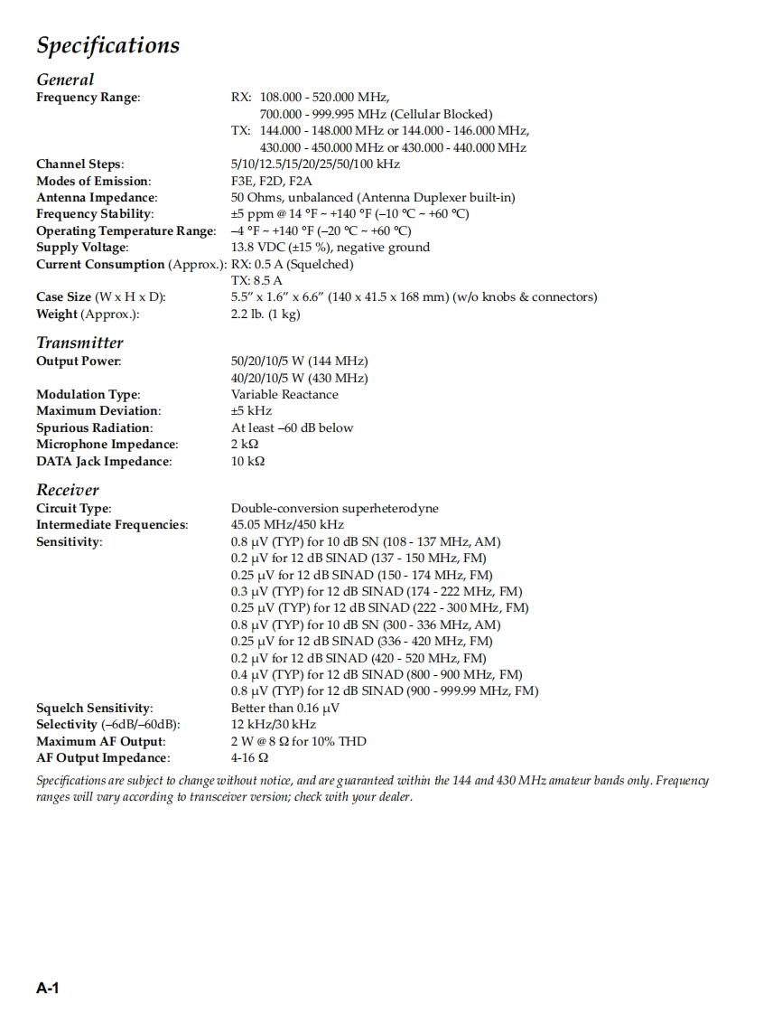 YAESUVERTEX STANDARD CO.,LTD.4-8-8 Nakameguro,Meguro-Ku,Tokyo 153-8644,JapanVERTEX STANDARDDual Band FM TransceiverrtCypress.CA.YAESU EUROPE B.V.FT-7800RP.O.Box 75525,1118 ZN Schiphol,The NetherlandsYAESU UK LTDUnit 12,Sun Valley Business Park,Winnall CloseTechnical SupplementWinchester,Hampshire,S023 OLB,U.K.VERTEX STANDARD HK LTD.Unit 5,20/F.Seaview Centre,139-141 Hoi Bun Road,2003 VERTEX STANDARD CO.,LTD.(EH016M90A)Kwun Tong,Kowloon,Hong KongDownloaded byRadioAmateur.EU6.☑0☑6u8Y■IntroductionThis manual provides technical information necessary for servicing the FT-7800R Transceiver.Servicing this equipment requires expertise in handling surface-mount chip components.Attempts by non-qualifiedpersons to service this equipment may result in permanent damage not covered by the warranty,and may be illegal insome countries.Two PCB layout diagrams are provided for each double-sided circuit board in the transceiver.Each side of thr board isreferred to by the type of the majority of components installed on that side("leaded"or"chip-only").In most cases oneside has only chip components,and the other has either a mixture of both chip and leaded components(trimmers,coils,electrolytic capacitors,ICs,etc.),or leaded components only.While we believe the technical information in this manual to be correct,Vertex Standard assumes no liability for dam-age that may occur as a result of typographical or other errors that may be present.Your cooperation in pointing out anyinconsistencies in the technical information would be appreciated.ContentsSpecifications..A-1Board Unit (Schematics,Layouts Parts)Exploded View Miscellaneous Parts ....B-1MAIN Unit.....Block Diagram..........C-1PANELUnitG-1Circuit Description.........D-1CH Unit.H-1Alignment ........E-1