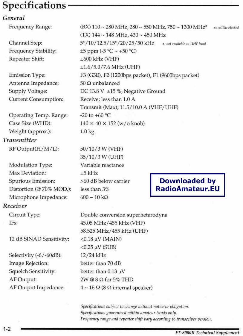 YAESUFT-8000RTechnical SupplementDownloaded byRadioAmateur.EUYAESU MUSEN CO.,LTD.1-20-2 Shimomaruko,Ota-Ku,Tokyo 146,JapanYAESU U.S.A.17210 Edwards Rd.,Cerritos,CA 90703,U.S.A.YAESU INTERNATIONAL DIVISION,(Caribbean,Mexico,Central So.America)7270 NW 12th St.,Suite 320,Miami,FL 33126,U.S.A.YAESU EUROPE B.V.y5000w33.000Snipweg 3,1118DN Schiphol,The NetherlandsYAESU UK LTDUnit 2,Maple Grove Business Centre,Lawrence Rd.,Hounslow,Middlesex,TW4 6DR,U.K.YAESU GERMANY GmbHAm Kronberger Hang 2,D-65824 Schwalbach,GermanyYAESU HK LTD.11th Floor Tsim Sha Tsui Centre,66 Mody Rd..Tsim Sha Tsui East,Kowloon,Hong Kong