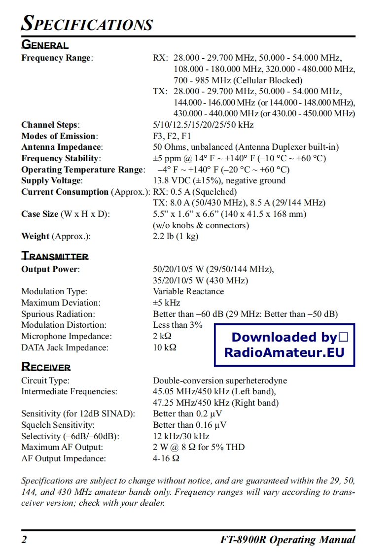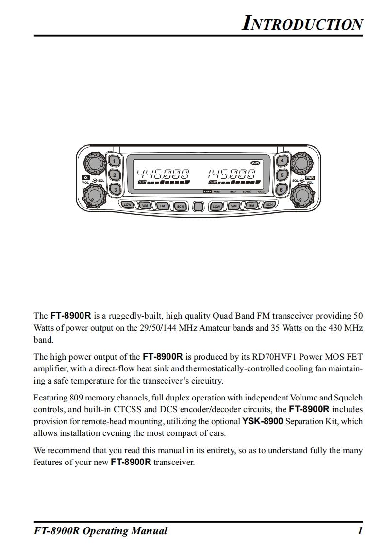 YAESUQUAD BAND FM TRANSCEIVERFT-8900ROPERATING MANUALDownloaded by▣RadioAmateur.EUoo00aΘo⊙O©g0OoO-59“000600011网VERTEX STANDARD CO.,LTD4-8-8 Nakameguro,Meguro-Ku,Tokyo 153-8644,JapanVERTEX STANDARDUS Headquarters10900 Walker Street,Cypress,CA 90630,U.S.A.YAESU EUROPE B.V.P.O.Box 75525,1118 ZN Schiphol,The NetherlandsYAESU UK LTD.Unit 12,Sun Valley Business Park,Winnall CloseWinchester,Hampshire,SO23 OLB,U.K.VERTEX STANDARD HK LTD.Unit 5,20/F.,Seaview Centre,139-141 Hoi Bun Road,Kwun Tong,Kowloon,Hong Kong
