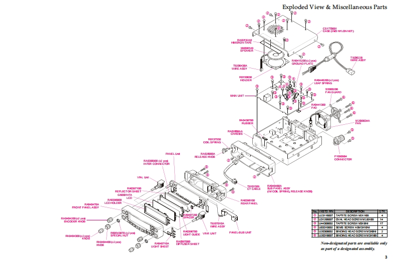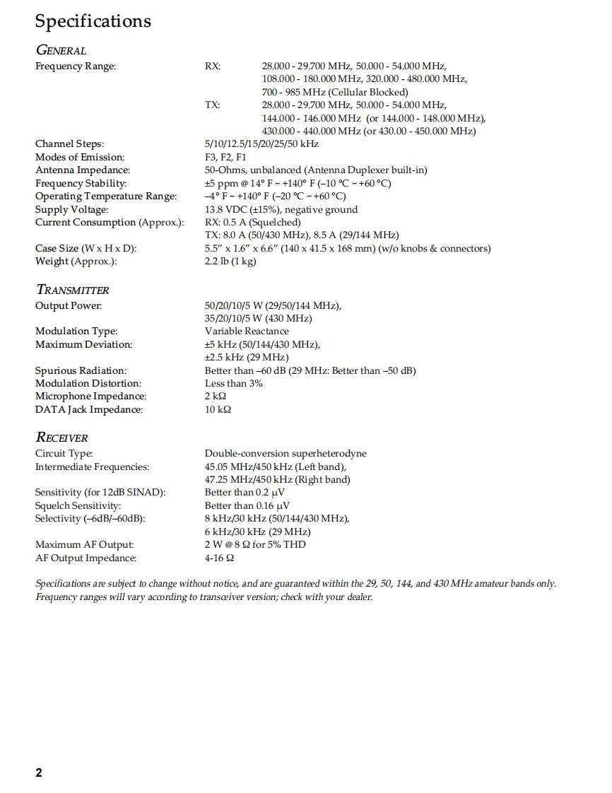 YAESUVERTEX STANDARD CO.,LTD.4-8-8 Nakameguro,Meguro-Ku.Tokyo 153-8644.JapanVERTEX STANDARDUS HeadquartersQuad Band FM Transceiver10900 Walker Street,Cypress,CA 90630.U.S.A.International Division8350 N.W.52nd Terrace,Suite 201,Miami,FL 33166,U.S.A.FT-8900RYAESU EUROPE B.V.P.O.Box 75525,1118 ZN Schiphol,The NetherlandsYAESU UK LTD.Technical SupplementUnit 12,Sun Valley Business Park,Winnall CloseWinchester,Hampshire,S023 OLB,U.K.VERTEX STANDARD HK LTD.2002 VERTEX STANDARD CO.,LTD.(EH008M90A)Unit 5,20/F.,Seaview Centre,139-141 Hoi Bun Road,Kwun Tong,Kowloon,Hong Kong。■■通■■■■■。■■■■■■■TONESUBO@IntroductionThis manual provides technical information necessary for servicing the FT-8900R Transceiver.Servicing this equipment requires expertise in handling surface-mount chip components.Attempts by non-qualifiedpersons to service this equipment may result in permanent damage not covered by the warranty,and may be illegal insome countries.Two PCB layout diagrams are provided for each double-sided circuit board in the transceiver.Each side of thr board isreferred to by the type of the majority of components installed on that side("leaded"or "chip-only").In most cases oneside has only chip components,and the other has either a mixture of both chip and leaded components(trimmers,coils,electrolytic capacitors,ICs,etc.),or leaded components only.While webelieve the technical information in this manual to be correct,Vertex Standard assumes no liability for damagethat may occur as a result of typographical or other errors that may be present.Your cooperation in pointing out anyinconsistencies in the technical information would be appreciated.ContentsSpecifications.Board Unit (Schematics,Layouts Parts)Exploded View Miscellaneous Parts........3Main Unit.9Connection Diagram…4Panel Unit..4.Circuit Description…Panel-Sub Unit.53…5VR-L Unit ....55Alignment….11VR-R Unit ....56