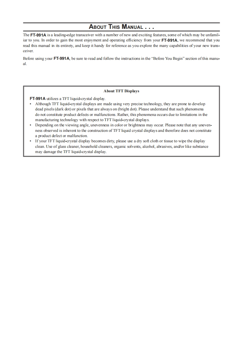 YAESUThe radioHF/VHF/UHF ALL MODE TRANSCEIVERH991AOPERATINGMANUAL快州三兰二4四日面YAESU MUSEN CO.,LTDTennozu Parkside Building2-5-8 Higashi-Shinagawa,Shinagawa-ku,Tokyo 140-0002 JapanYAESU USA6125 Phyllis Drive,Cypress,CA 90630,U.S.A.YAESU UKUnit 12.Sun Valley Business Park,Winnall CloseWinchester,Hampshire,SO23 0LB,U.K.