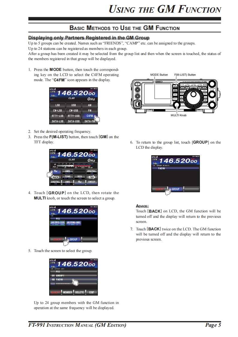 YAESUThe radioHF/VHF/UHF ALL MODE TRANSCEIVERC4FM FDMA/FMFT-991NSTRUCTION MANUAL(GM Edition)Thank you for purchasing this Yaeau product.This instruction manual explains operations and settings associated with the "GMFunction"For information on basic operation of the transceiver,please refer to the FT-991Operating Manual.