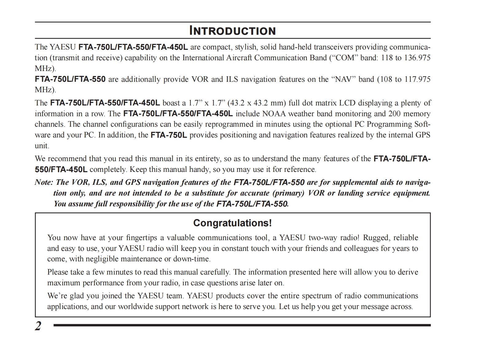 FTA-750_550_450_操作说明书手册_ENG_EA001N209_2110S-PS-1找手册网33天前发布关注私信7.61MB96页048FTA-750_550_450_操作说明书手册_ENG_EA001N209_2110S-PS-1此内容为付费资源,请付费后查看¥19¥21黄金会员免费钻石会员免费登录购买付费资源 第1页 / 共96页 第2页 / 共96页 第3页 / 共96页 第4页 / 共96页 第5页 / 共96页 试读已结束,还剩91页,您可下载完整版后进行离线阅读 THE END八重洲 文本预览 YAESUAIR BAND TRANSCEIVERFTA-750L SpiritYAESUSpiritGPSFTA-550 ProxFTA-450LOperating ManualENTMENU BACK SAVE123COMM456121.57890 查看更多 收起部分 喜欢就支持一下吧收藏