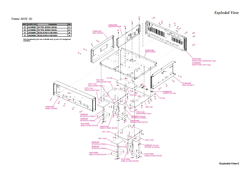YAESUVERTEX STANDARD CO.,LTD.4-8-8 Nakameguro,Meguro-Ku,Tokyo 153-8644,JapanVERTEX STANDARDUS HeadquartersFT DX 9000 series10900 Walker Street,Cypress,CA 90630.U.S.A.YAESU EUROPE B.V.P.O.Box 75525,1118 ZN Schiphol,The NetherlandsYAESU UK LTD.Technical supplementUnit 12,Sun Valley Business Park,Winnall CloseWinchester,Hampshire,SO23 OLB,U.K.VERTEX STANDARD HK LTD.Unit 5,20/F.,Seaview Centre,139-141 Hoi Bun Road,O2005 VERTEX STANDARD CO.,LTD.EHO10H90AKwun Tong,Kowloon,Hong KongContentsExploded ViewPA-B Unit(D,Contest Type)AlignmentPA-A Unit(MP Type)Block DiagramPS Unit(MP Type)Interconnection DiagramSCP-1 UnitRX-1 UnitSCP-2 Unit (D,MP Type,RXU-9000)RX-2 Unit (D,MP Type,RXU-9000)VR-A UnitBPF-1 UnitVR-B UnitBPF-2 Unit(D,MP Type,RXU-9000)VR-C Unit(D,MP Type,RXU-9000)AF UnitVR-D UnitTX UnitVR-E UnitDVS UnitVR-F UnitLOCAL UnitSW-A UnitREF UnitSW-B UnitVRF-1 UnitSW-C UnitVRF-2 Unit (D,MP Type,RXU-9000)SW-D Unit(D Type,TFT-9000)RX-TUNE UnitSW-E UnitSENSOR-A Unit(D Type,MTU-160)SW-G Unit (D Type,TFT-9000)SENSOR-C Unit(D Type,MTU-80/40)SW-J UnitSENSOR-E Unit (D Type,MTU-30/20)SW-N UnitLCD-CNTL Unit (D Type,TFT-9000)ENC-A UnitCNTL UnitCONNECT-A Unit(D,MP Type,DMU-9000)MEMORY Unit(D,MP Type,DMU-9000)CONNECT-B Unit(D,MP Type,DMU-9000)TUNER-MAIN Unit(D,Contest Type)JACK UnitTUNER-MAIN-A Unit(MP Type)LINK UnitTUNER-CNTL UnitANT Unit(D,Contest Type)Contest MPType Front Panel PCBANT-A Unit(MP Type)BACK-LIGHT UnitTUNE-1 Unit (D Type,MTU-160)JACK-S UnitTUNE-2 Unit(D Type,MTU-80/40)SW-K UnitTUNE-3 Unit(D Type,MTU-30/20)SW-L UnitPC-FIL UnitSW-M UnitDownloaded byMIC-A UnitVR-G UnitRadioAmateur.EUMIC-B Unit
