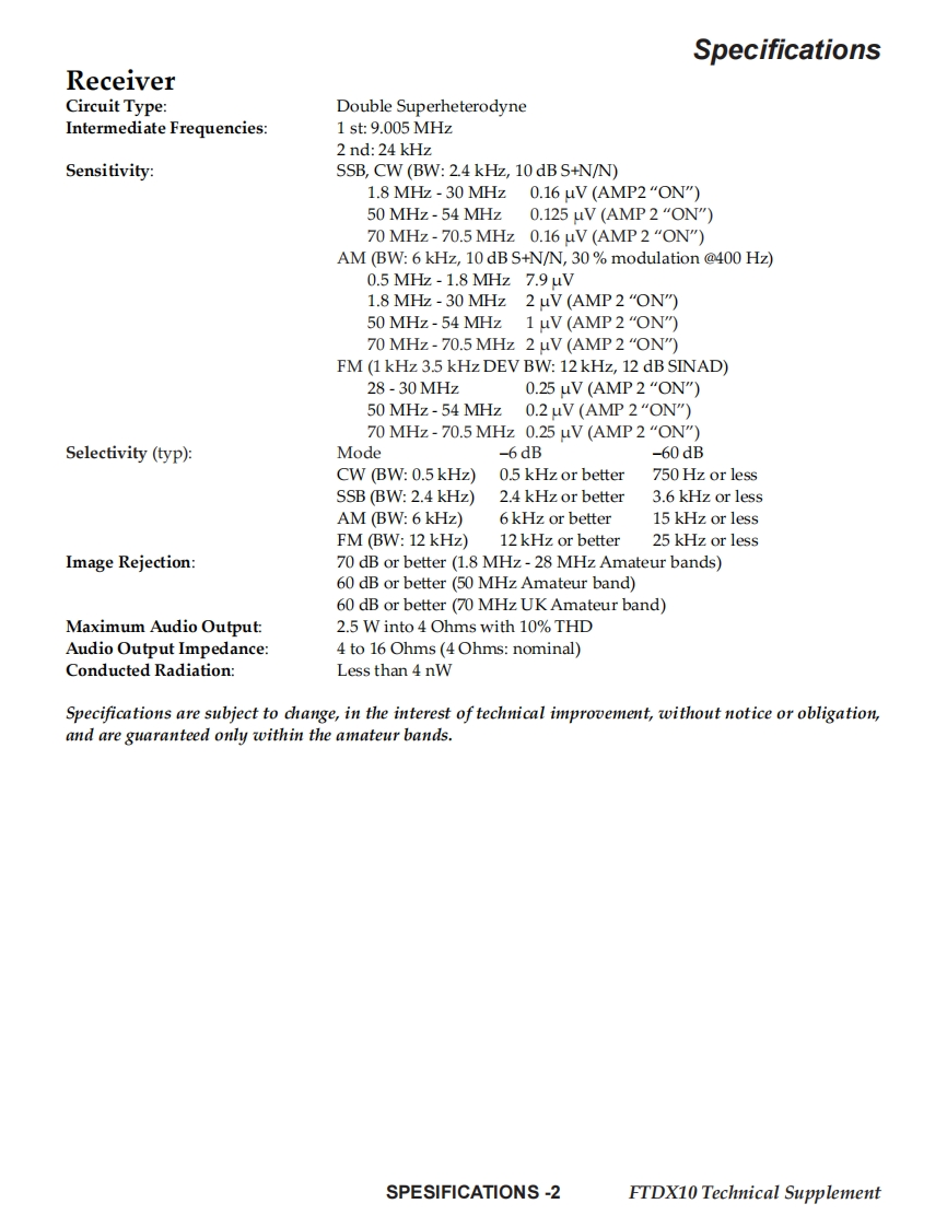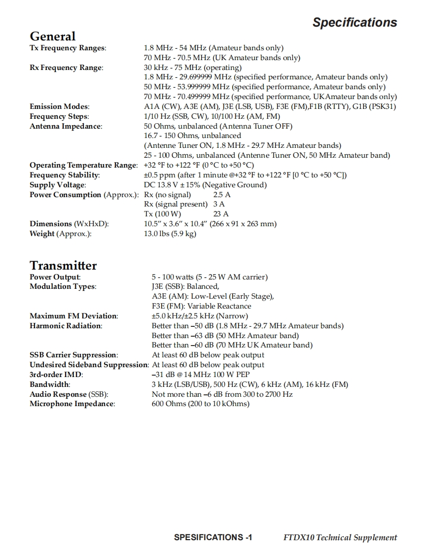 YAESUThe rad面oTechnical SupplementHF/50 MHz TRANSCEIVERFTDX10EHO76H90A@2021 YAESU MUSEN CO.,LTD.IntroductionThis manual provides the technical information necessaryContentsfor servicing the FTDX10 HF/50 MHz TRANSCEIVER.Servicing this equipment requires expertise in handlingSpecificationssurface-mount chip components.Attempts by non-qualifiedExploded Viewpersons to service this equipment may result in permanentBlock Diagramdamage not covered by the warranty,and may be illegal inConnection Diagramsome countries.While we believe the information in this manual to be cor-Alignmentrect,YAESU assumes no liability for damage that may oc-Board Unit(Schematics,Layouts Parts)cur as a result of typographical or other errors that may beMAIN Unitpresent.Your cooperation in pointing out any inconsisten-FINAL Unitcies in the technical information would be appreciated.DISPLAY UnitSW UnitMEMORY UnitVR UnitENC-A UnitENC-B UnitDC-DC UnitImportant NoteThis transceiver was assembled using Pb(lead)free solder,based on the RoHS specification.Only lead-free solder (Alloy Composition:Sn-3.0Ag-0.5Cu)should be used for repairs performed on this apparatus.The solder statedabove utilizes the alloy composition required for compliance with the lead-free specification,and any solder with the above alloy com-position may be used.