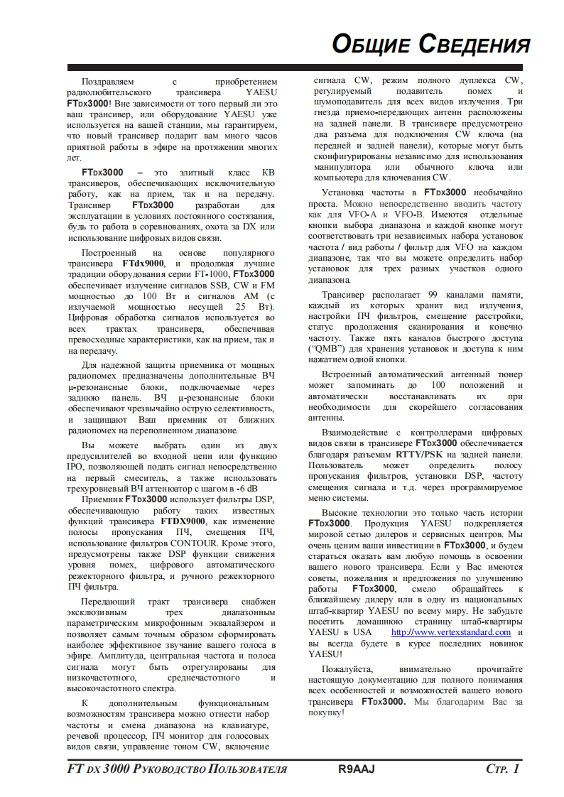 YAESUThe radioHF/50 MHz TPAHCNBEPFT DX 3000PyKoBOACTBo nonb3oBatena4H95.000nepeBon nHcTpykunn R9AAJYAESU MUSEN CO.,LTD.Tennozu Parkside Building2-5-8 Higashi-Shinagawa,Shinagawa-ku,Tokyo 140-0002 JapanYAESU USA6125 Phyllis Drive,Cypress,CA 90630,U.S.A.YAESU UK LTD.Unit 12.Sun Valley Business Park.Winnall CloseWinchester,Hampshire,S023 0LB,U.K.YAESU HK LTD.Unit 1306-1308.13F.,Millennium City 2.378 Kwun Tong Road.Kwun Tong,Kowloon,Hong KongCopyright©R9AAJ