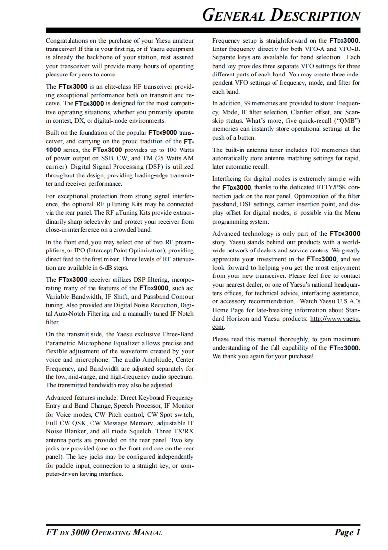 FTDX3000_操作说明书手册_EH046H204_1902M-DS-1找手册网33天前发布关注私信34.85MB140页036FTDX3000_操作说明书手册_EH046H204_1902M-DS-1此内容为付费资源,请付费后查看¥19¥21黄金会员免费钻石会员免费登录购买付费资源 第1页 / 共140页 第2页 / 共140页 第3页 / 共140页 第4页 / 共140页 第5页 / 共140页 试读已结束,还剩135页,您可下载完整版后进行离线阅读 THE END八重洲 文本预览 YAESUT1erac7。HF/50 MHz TRANSCEIVERFT DX 3000OPERATINGMANUALH95.000H1:00!@@@@@, 查看更多 收起部分 喜欢就支持一下吧收藏