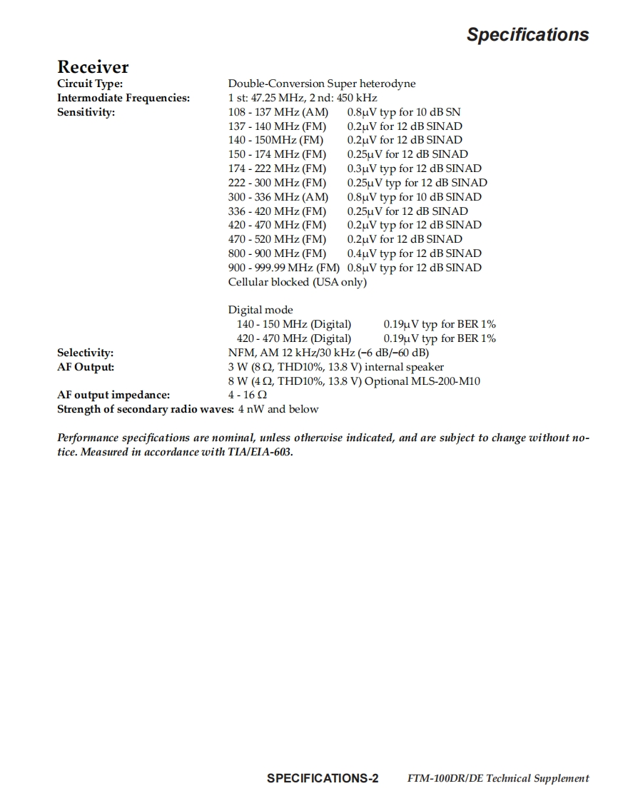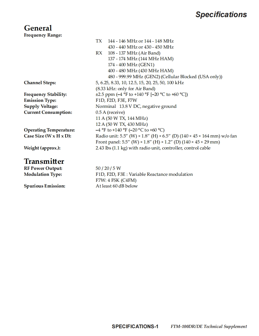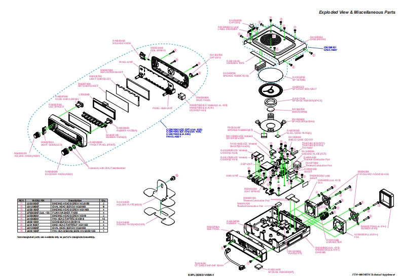 YAESU厂9■coTechnical Supplement144/430 MHz 50 W Dual-Band TransceiverFTM-100DR/DEEH048M90B2017 YAESU MUSEN CO..LTD.IntroductionContentsThis manual provides the technical information necessary forservicing the FTM-100DR/DE 144/430 MHz 50 W Dual BandSpecificationsTransceiver.Exploded ViewServicing this equipment requires expertise in handing surface-Block Diagrammount chip components.Attempts by non-qualified personsAlignmentto service this equipment may result in permanent damage notBoard Unit(Schematics,Layouts Parts)covered by the warranty,and may be illegal in some countries.MAIN UnitTwo PCB layout diagrams provided for each double-sidedPANEL Unitboard in this transceiver.Each side of the board is referred toby the type of the majority of components installed on that sidePANEL SUB Unit("Side A"or "Side B").In most cases one side has only chipDSP Unitcomponents,and the other has either a mixture of both chip andleaded components (trimmers,coils,electrolytic capacitors,ICs,etc.),or leaded components only.While we believe the information in this manual to be correct,YAESU assumes no liability for damage that may occur as aresult of typographical or other errors that may be present.Yourcooperation in pointing out any inconsistencies in the technicalinformation would be appreciated.Important NoteThis transceiver was assembled using Pb (lead)free solder,based on the RoHS specification.Only lead-free solder(Alloy Composition:Sn-3.0Ag-0.5Cu)should be used for repairs performed on this apparatus.The solder statedabove utilizes the alloy composition required for compliance with the lead-free specification,and any solder with the above alloy com-position may be used.
