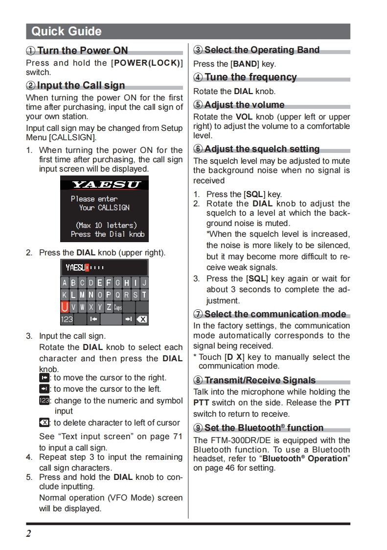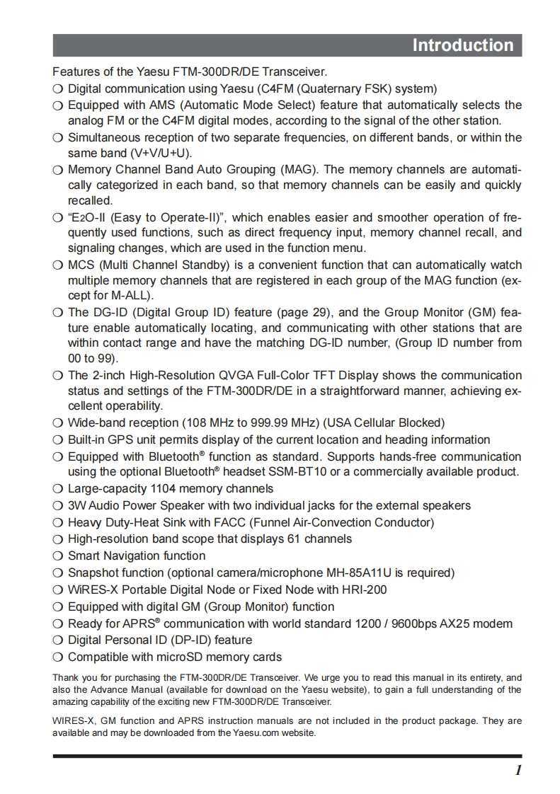 FTM-300DE_DR_使用说明书手册找手册网33天前发布关注私信4.06MB80页049FTM-300DE_DR_使用说明书手册此内容为付费资源,请付费后查看¥19¥21黄金会员免费钻石会员免费登录购买付费资源 第1页 / 共80页 第2页 / 共80页 第3页 / 共80页 第4页 / 共80页 第5页 / 共80页 试读已结束,还剩75页,您可下载完整版后进行离线阅读 THE END八重洲 文本预览 YAESUThe一cC五。C4FM/FM 144/430MHzDUAL BAND DIGITAL TRANSCEIVERFTM-300DRFTM-300DEOperating ManualBluetoothMVFORX川NBACKA/B146.520DISP445.500FM9 查看更多 收起部分 喜欢就支持一下吧收藏