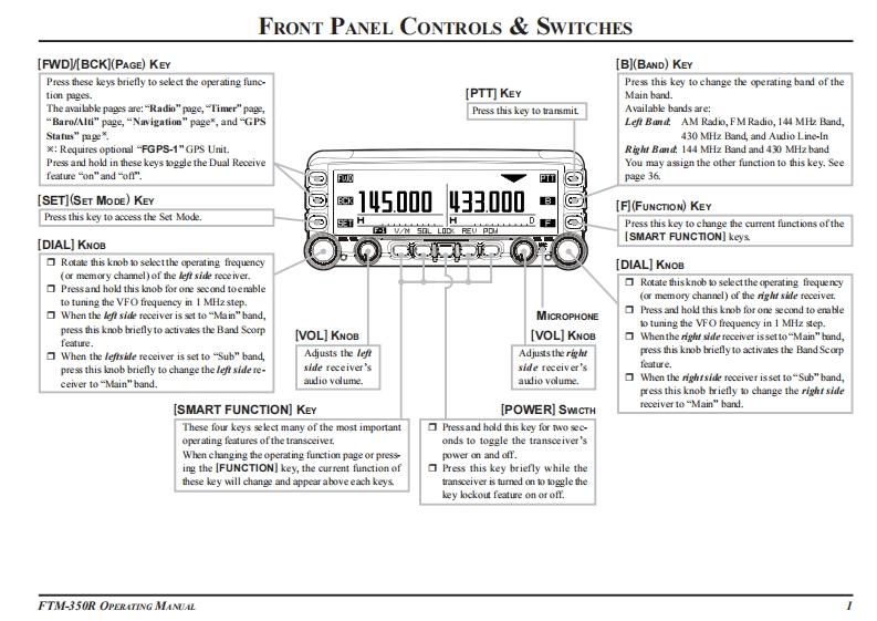 YAESUDUAL BAND FM TRANSCEIVERFTM-350ROPERATING MANUALA12PT而446.000144390SET HBUS9V/M SBL LOCK REV POWVERTEX STANDARD CO.,LTD.4-8-8 Nakameguro,Meguro-Ku,Tokyo 153-8644,JapanVERTEX STANDARDUS Headquarters10900 Walker Street,Cypress,CA 90630,U.S.AYAESU UK LTD.Unit 12,Sun Valley Business Park,Winnall CloseWinchester,Hampshire,S023 OLB,U.K.VERTEX STANDARD HK LTDUnit 5,20/F.,Seaview Centre,139-141 Hoi Bun Road,Kwun Tong,Kowloon,Hong KongVERTEX STANDARD(AUSTRALIA)PTY.,LTD.Normanby Business Park,Unit 14/45 Normanby RoadNotting Hill 3168,Victoria,Australia