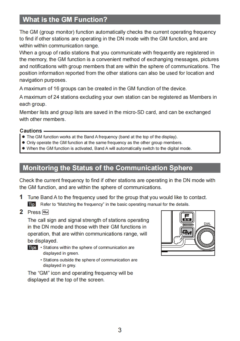 YAESUThe radio144/430MHz50WFTM-400DRDUAL BAND TRANSCEIVERInstruction ManualC4FM FDMA/FM(GM Edition)Thank you for purchasing this Yaeau product.This instruction manual explains information related to the "GM Function".For information on basic operation of the transceiver,please refer to the enclosedFTM-400DR operating manual.