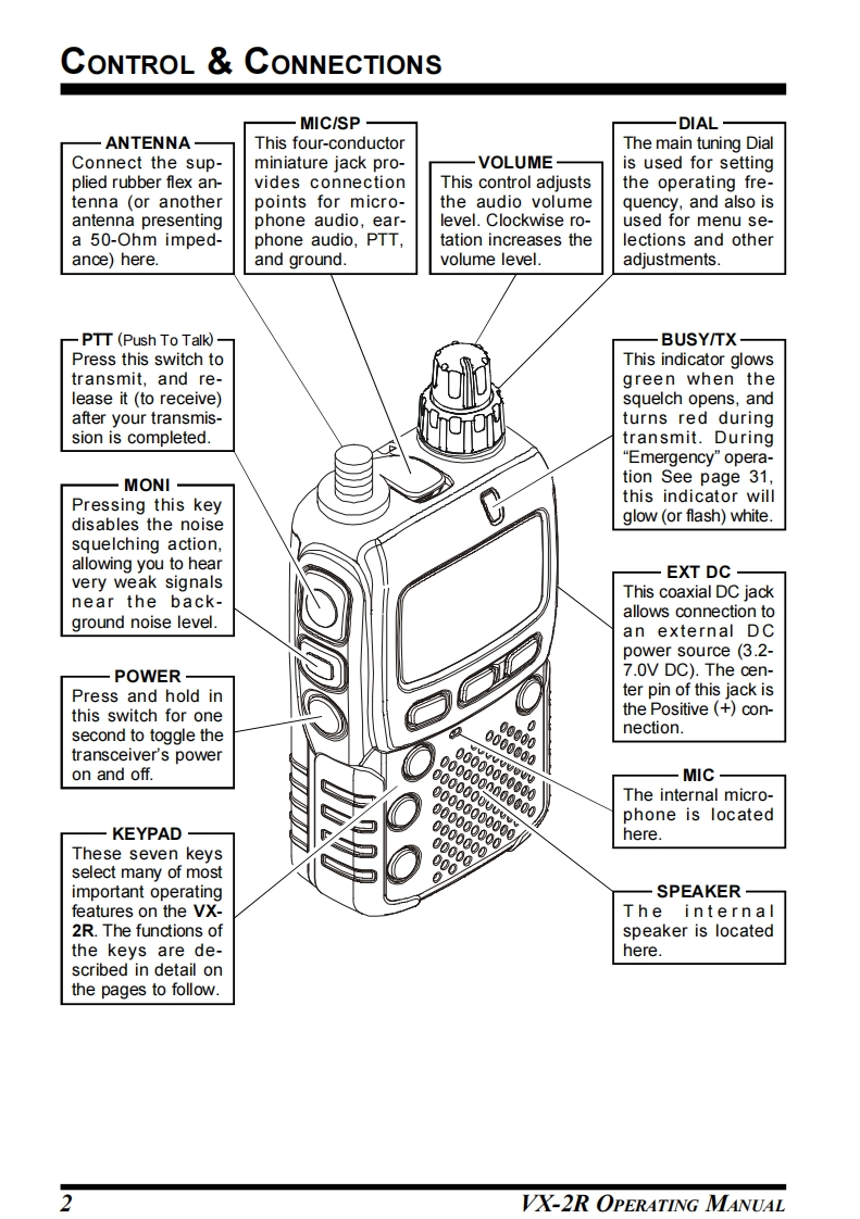 YAESUVHF/UHFULTRA-COMPACT DUAL-BAND TRANSCEIVERWITH WIDE BAND COVERAGEVX-2ROPERATING MANUALVERTEX STANDARD CO.,LTD.4-8-8 Nakameguro,Meguro-Ku,Tokyo 153-8644,JapanVERTEX STANDARDUS Headquarters10900 Walker Street,Cypress,CA 90630,U.S.A.International Division8350 N.W.52nd Terrace,Suite 201,Miami,FL 33166,U.S.A.YAESU EUROPE B.V.P.O.Box 75525,1118 ZN Schiphol,The NetherlandsYAESU UK LTD.Unit 12,Sun Valley Business Park,Winnall CloseWinchester,Hampshire,S023 0LB,U.K.VERTEX STANDARD HK LTD.Unit 5,20/F.,Seaview Centre,139-141 Hoi Bun Road,Kwun Tong,Kowloon,Hong Kong