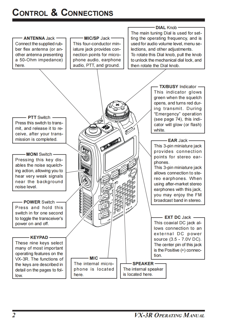 YAESUVHF/UHFULTRA-COMPACT DUAL-BAND TRANSCEIVERWITH WIDE BAND COVERAGEVX-3ROPERATING MANUALYAESUVERTEX STANDARD CO.,LTD.CH34-8-8 Nakameguro,Meguro-Ku,Tokyo 153-8644,Japan'6000VERTEX STANDARDFw▣超■US Headquarters10900 Walker Street,Cypress,CA 90630,U.SA.SQ TYPYAESU EUROPE B.V.MODE BAND TX PO VIMP.O.Box 75525,1118 ZN Schiphol,The NetherlandsSPCSCAN SETYAESU UK LTD.Unit 12,Sun Valley Business Park,Winnall CloseWinchester,Hampshire,SO23 0LB,U.K.VERTEX STANDARD HK LTD.阁1Unit 5,20/F.,Seaview Centre,139-141 Hoi Bun Road,SUB-RKwun Tong,Kowloon,Hong KongRADIO ANTVERTEX STANDARD(AUSTRALIA)PTY.,LTD.FM TRANSCEIVER VX-3Normanby Business Park,Unit 14/45 Normanby RoadNotting Hill 3168,Victoria,Australia