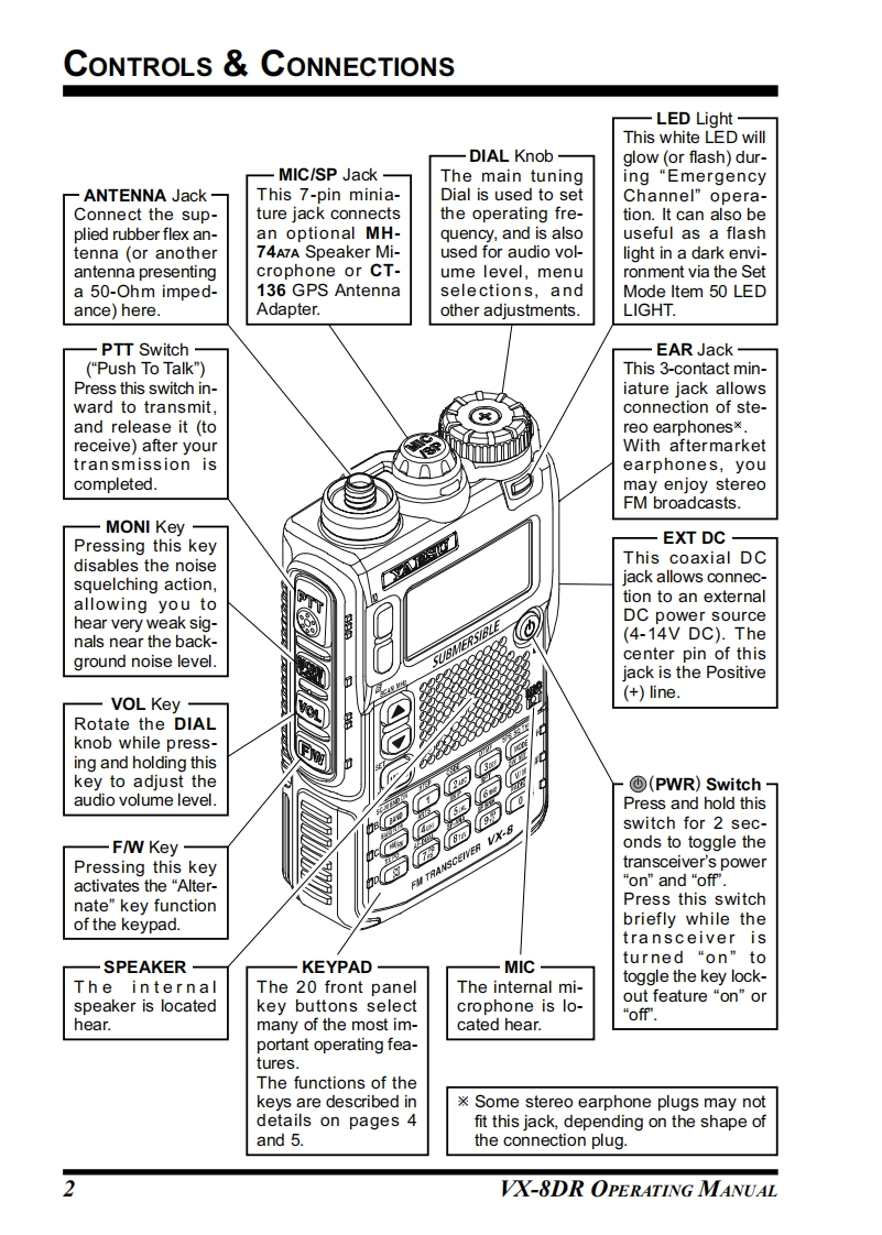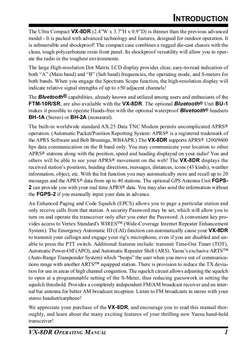 SYAESU50/144/430MHzTRIPLE-BAND HEAVY DUTYSUBMERSIBLE TRANSCEIVERVX-8DROPERATING MANUALI YAESU%433.09VERTEX STANDARD CO.,LTD.4-8-8 Nakameguro,Meguro-Ku,Tokyo 153-8644.JapanVERTEX STANDARDSUBMERSIBLEUS Headquarters10900 Walker Street,Cypress,CA 90630,U.S.A.YAESU UK LTD.Unit 12.Sun Valley Business Park.Winnall CloseWinchester,Hampshire,S023 0LB,U.K.VERTEX STANDARD HK LTD.Unit 5,20/F.,Seaview Centre.139-141 Hoi Bun Road.Kwun Tong.Kowloon,Hong Kong709整VERTEX STANDARD(AUSTRALIA)PTY.,LTD.Normanby Business Park,Unit 14/45 Normanby RoadNotting Hill 3168.Victoria,Australia