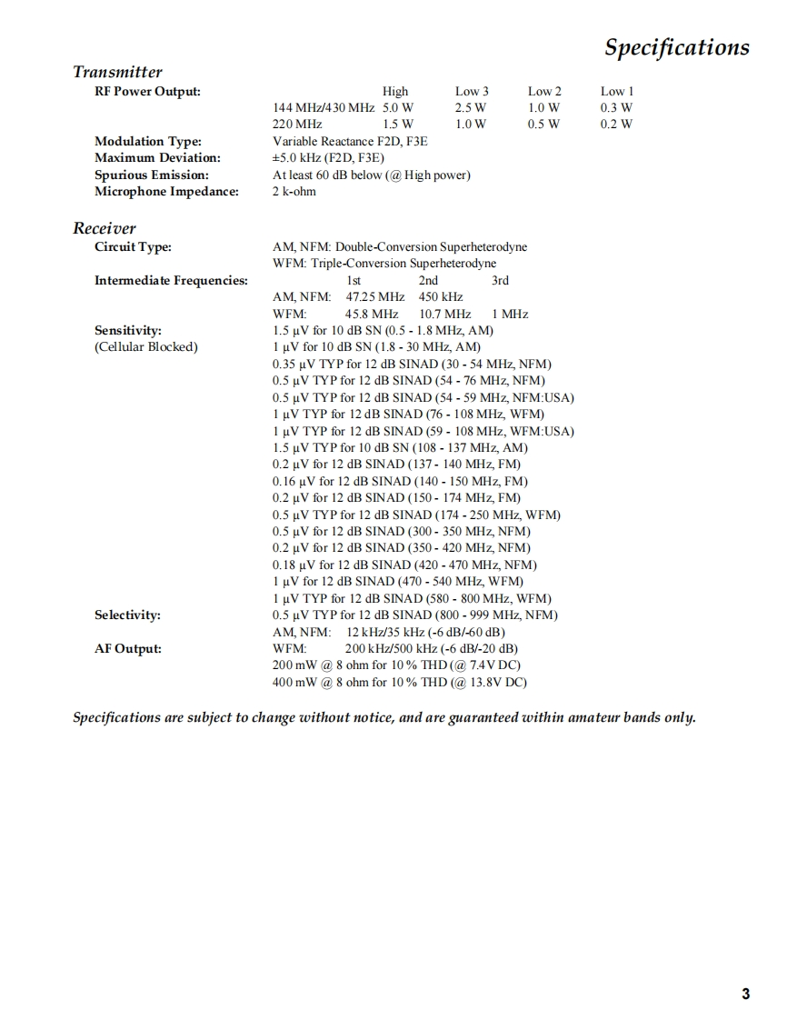 Dual-BandVERTEX STANDARD CO.,LTD.Heavy Duty Submersible Transceiver4-8-8 Nakameguro,Meguro-Ku Tokyo 153-8644,JapanVERTEX STANDARDUS Head quartersVX-6R10900 Waker Street,Cypress,CA 90630,U.S.A.YAESU EUROPE B.V.P.O.Box 75525,1118 ZN Schiphol,The NetherlandsYAESU UK LTD.Technical SupplementUnit 12.Sun Valey Business Park,Wimall CloseWinchester,Hampshire,S230LB,U.K.VERTEX STANDARD HK LTD.Unit 5.Centre,139-141 Hoi Bun Road,@2005 VERTEX STANDARD CO.,LTD.EH021M90AKwun Tong.Kowloon,Hong KongIntroductionThis manual provides the technical information necessary for servicingthe VX-6R Dual-Band Heavy Duty Submersible Transceiver.Servicing thisequipment requires expertise in handing surface-mountchip components.Attempts by non-qualified persons to service thisequipment may result in permanent damage not covered by the war-@的ranty,and may be illegal in some countries.Two PCB layout diagrams provided for each double-sided board inYAESUthis transceiver.Each side of the board is referred to by the type of themajority of components installed on that side("Side A"or"Side B").Inmost cases one side has only chip components,and the other has eithera mixture of both chip and leaded components(trimmers,coils,electro-lytic capacitors,ICs,etc.),or leaded components only.While we believe the information in this manual to be correct,VERTEX STANDARD assumes no liability for damage that may occuras a result of typographical or other errors that may be present.Yourcooperation in pointing out any inconsistencies in the technical infor-VMmation would be appreciated.Radio Mods ManualsContentsSpecification .........2Exploded View Miscellaneous Parts .....…4Block Diagram……5Interconnection Diagram .................…6Circuit Description…7Alignment11Board Unit(Schematics,Layouts Parts)CNTL Unit…17AF Unit27RF Unit...37VCO Unit.53