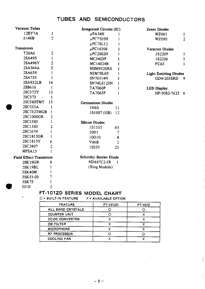 FT-101ZDKB2LJJRadio Mods DatabaseTABLE CONTENTS(Page)GENERAL DESCRIPTION.·.··.·.·.SPECIFICATIONS..................................2TUBES AND SEMICONDUCTORS3CONTROLS AND SWITCHESgREAR APRON CONNECTIONS.....个ACCESSORIES.·PINSTALLATION..........oOPERATION........12BLOCK DIAGRAM..··.21CIRCUIT DESCRIPTION....··22MAINTENANCE AND ALIGNMENT.,..·..·...·..34PARTS LIST…...43