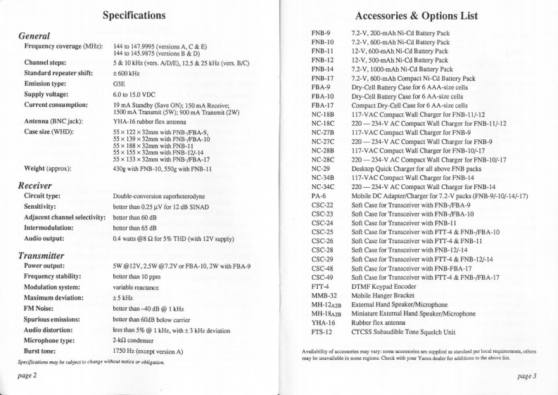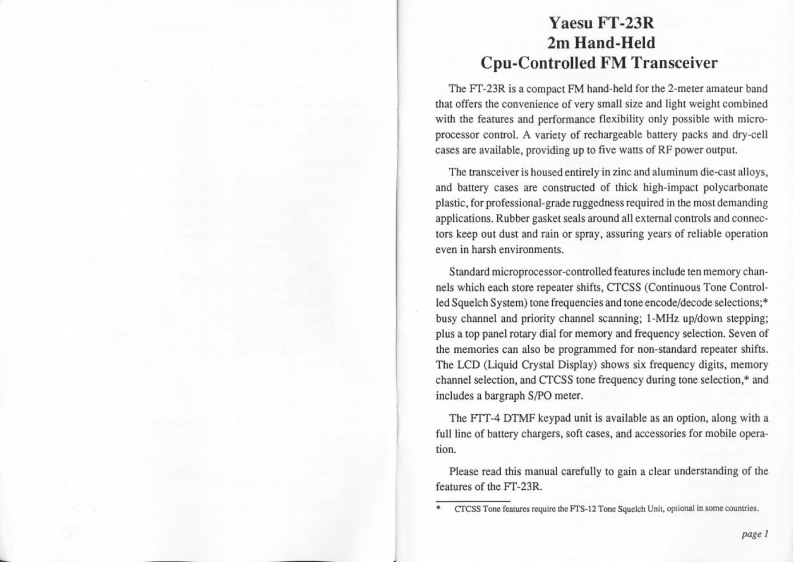 FT-23ROPERATINGMANUALYAESUYAESU MUSEN CO.,LTD.Copyright 1990No portion of this manualC.P.O.BOX 1500,TOKYO.JAPANYaesu Musen Co..Ltd.may be reproducedYAESU U.S.A.All rights reserved.without the permission of17210 Edwards Rd.,Cerrites,Californis 90701.U.S.A.Yaesu Musen Co.,Ltd.Printed in lapan.YAESU EUROPE B.V.Snipwer 3.1118AA Sckighol,The Netherlands32900100108R-5K