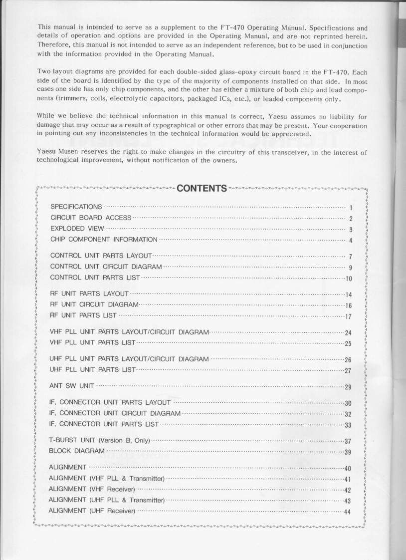 FT-470TECHNICAL SUPPLEMENTYAESU MUSEN CO.,LTD.C.PO.BOX 1500,TOKYO.JAPANYAESU U.S.A.17210 Edwards Rd.Cerritos,California,90701 U.S.AYAESU EUROPE B.V.Snipweg 3.1118AA Schiphol The NETHERLANDS