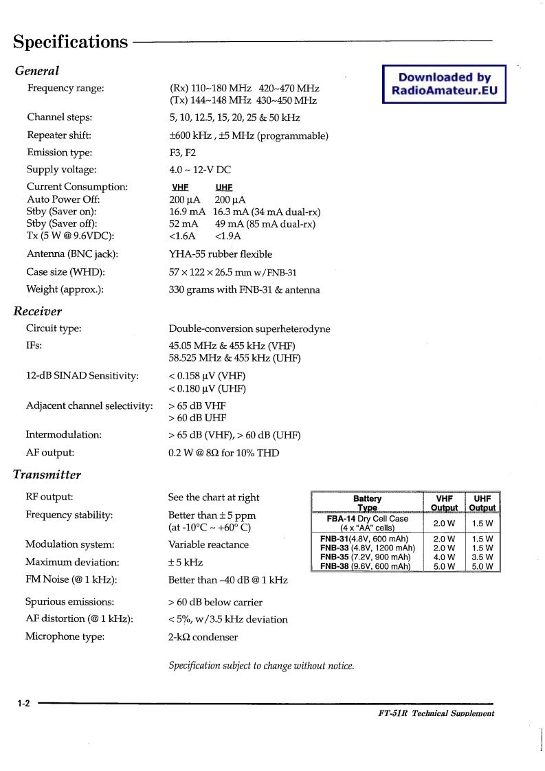 FT-51RTechnical SupplementnYAESU MUSEN CO.,LTD.C.P.O.Box 1500,Tokyo,JapanYA玉Ur50g30YAESU U.S.A.17210 Edwards Rd.,Cerritos,California 90703U.S.A.YAESU EUROPE B.V.Snipweg 3.1118DN Schiphol,The Netherlands高YAESU UK LTD.Unit 2,Maple Grove Business CentreLawrence Rd.,Hounslow,Middlesex TW4 6DR,UKDownloaded byRadioAmateur.EU