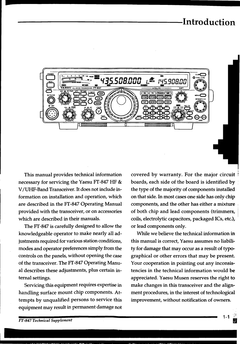 Mo≤K0WWW.RADIOHOBBY.EU下AESUFT-847HF&V/UHF Band TransceiverTechnical SupplementVERTEX STANDARD CO.,LTD.4-8-8 Nakameguro,Meguro-Ku,Tokyo 153-8644,JapanVERTEX STANDARDCertos.CA90703,U.SAInternational Division8350 N.W.52nd Terrace,Suite 201,Miami,FL 33166.U.S.AYAESU EUROPE B.V.=y3550800890a.00P.O.Box 75525.1118 ZN Schiphol,The Netheriands密YAESU UK LTD.Unit 12,Sun Valley Business Park.Winnall CioseWinchester,Hampshire,SO23 OLB,U.K.YAESU GERMANY GmbHAm Kronberger Hang 2,D-65824 Schwalbach,GermanyVERTEX STANDARD HK LTD.Unit 5.20/F..Seaview Centre,139-141 Hoi Bun Road.Kwun Tong,Kowloon,Hong Kong