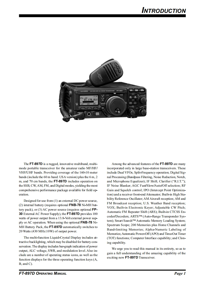 YAESUHFNHF/UHFALL MODE TRANSCEIVERFT-897DOperating ManualT-n02.176.81VERTEX STANDARD CO.,LTD.4-8-8 Nakameguro,Meguro-Ku,Tokyo 153-8644,JapanVERTEX STANDARDUS Headquarters10900 Walker Street,Cypress,CA 90630,U.S.A.YAESU EUROPE B.V.P.O.Box 75525,1118 ZN Schiphol.The NetherlandsYAESU UK LTD.Unit 12.Sun Valley Business Park,Winnall CloseWinchester.Hampshire.SO23 OLB.U.K.VERTEX STANDARD HK LTD.Unit 5,20/F.,Seaview Centre,139-141 Hoi Bun Road,Kwun Tong,Kowloon,Hong Kong
