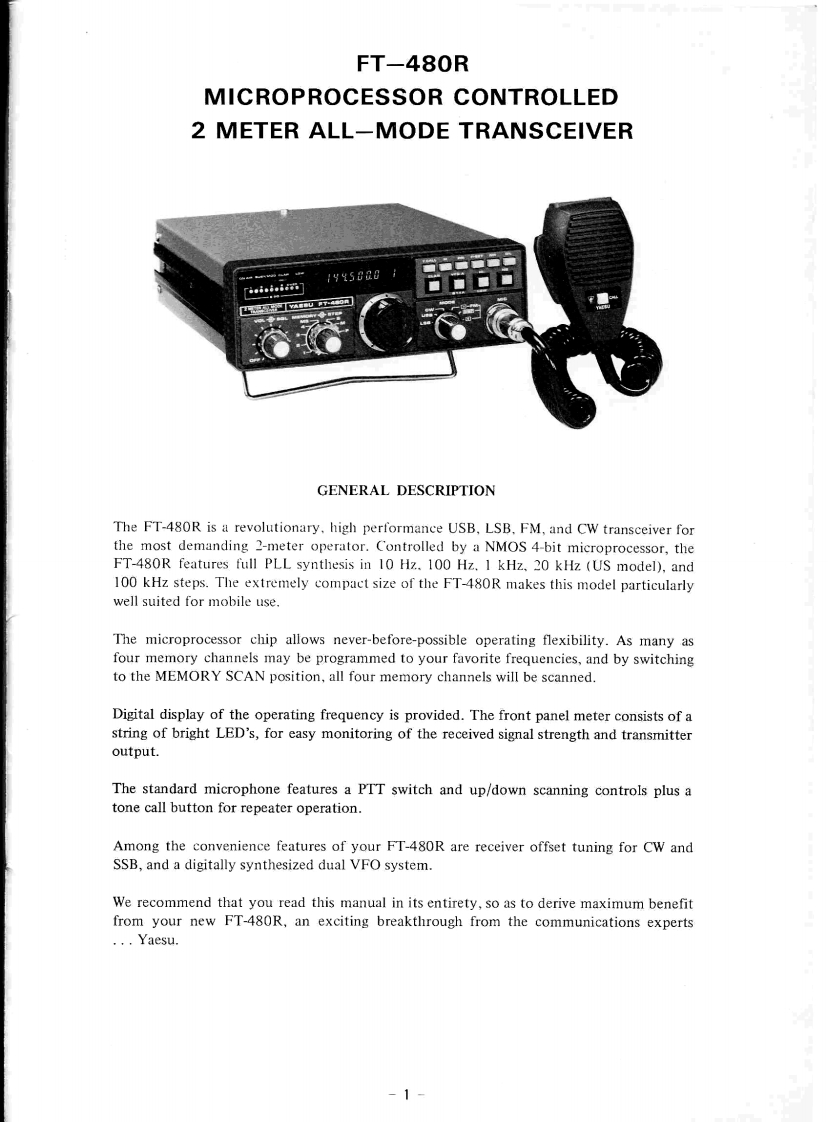 YAESUFT480R操作说明书手册找手册网33天前发布关注私信4.55MB39页023YAESUFT480R操作说明书手册此内容为付费资源,请付费后查看¥19¥21黄金会员免费钻石会员免费登录购买付费资源 第1页 / 共39页 第2页 / 共39页 第3页 / 共39页 第4页 / 共39页 第5页 / 共39页 试读已结束,还剩34页,您可下载完整版后进行离线阅读 THE END八重洲 文本预览 INSTRUCTIONMANUALFT-480RYAESU MUSEN CO.,LTD.TOKYO JAPAN 查看更多 收起部分 喜欢就支持一下吧收藏