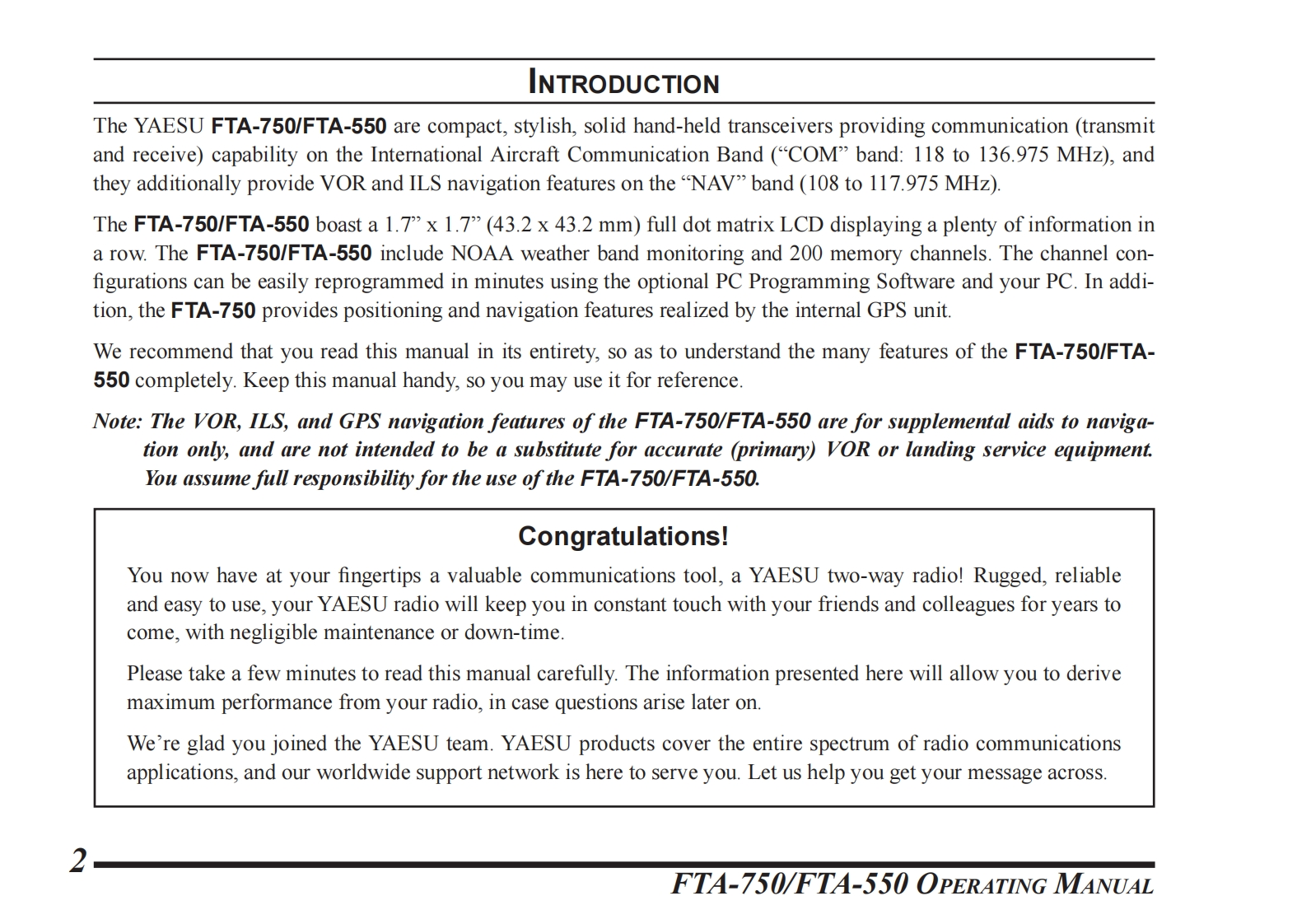 Yaesu_FTA-750_550_用户使用操作说明书手册_USA找手册网33天前发布关注私信4.17MB92页034Yaesu_FTA-750_550_用户使用操作说明书手册_USA此内容为付费资源,请付费后查看¥19¥21黄金会员免费钻石会员免费登录购买付费资源 第1页 / 共92页 第2页 / 共92页 第3页 / 共92页 第4页 / 共92页 第5页 / 共92页 试读已结束,还剩87页,您可下载完整版后进行离线阅读 THE END八重洲 文本预览 YA西GUJAIR BAND TRANSCEIVERYAESUFTA-750 SpiritSpiritGPSFTA-550 Pro-xOperating ManualENTMENUBACK SAVEo123COMM456121.51890 查看更多 收起部分 喜欢就支持一下吧收藏