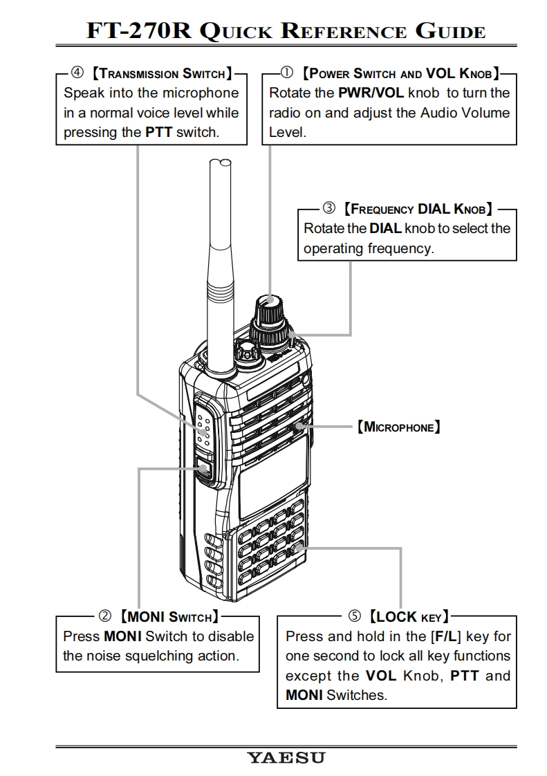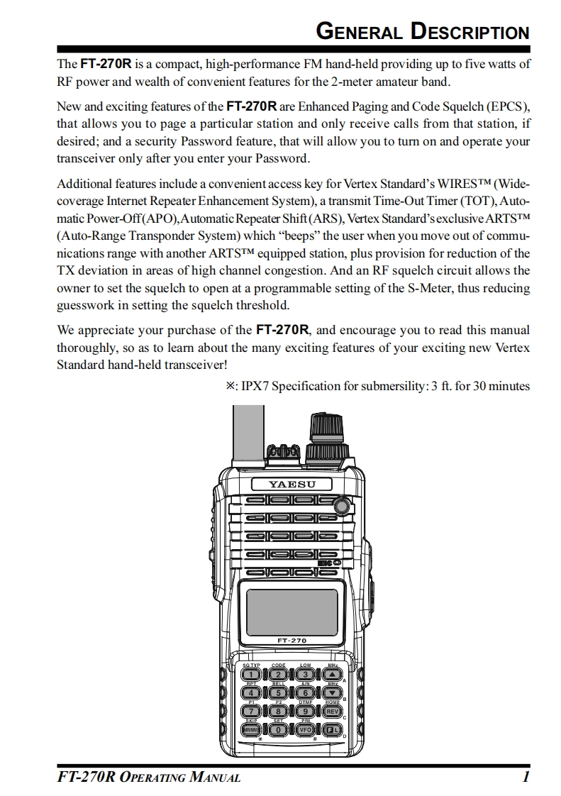 YAESUVHF FM TRANSCEIVERFT-270ROPERATING MANUALYAESU-8-"652☑as0d■FT-270VERTEX STANDARD CO.,LTD.4-8-8 Nakameguro,Meguro-Ku,Tokyo 153-8644,JapanVERTEX STANDARD U.S.A.Inc.1236125 Phyllis Drive,Cypress,California 90630,U.S.A.YAESU UK LTD.456Unit 12,Sun Valley Business Park,Winnall CloseWinchester,Hampshire,S023 0LB,U.K.789REVVERTEX STANDARD HK LTD.Unit 1306-1308,13F.,Millennium City 2.378 Kwun Tong Road.0VFOKwun Tong,Kowloon,Hong KongVERTEX STANDARD (AUSTRALIA)PTY.,LTD.Tally Ho Business Park,10 Wesley Court,East Burwood,VIC,3151