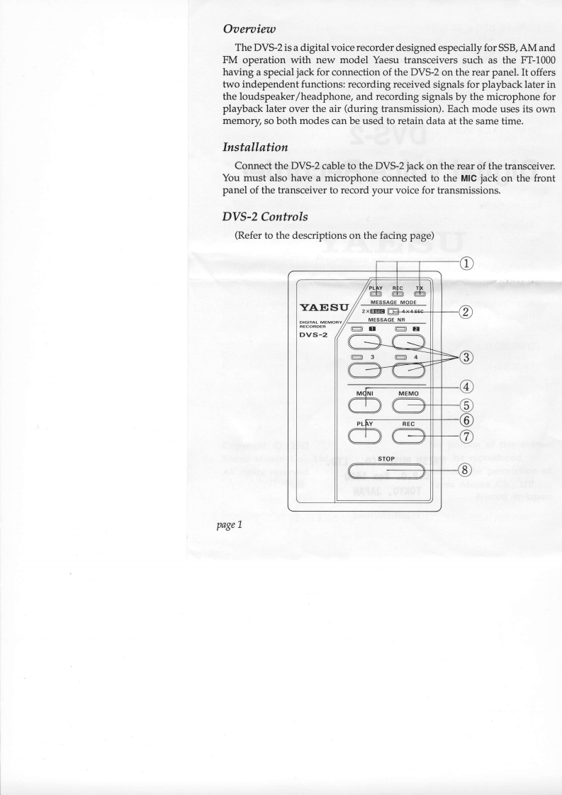 八重洲Yaesu_DVS-2_user操作说明书手册找手册网33天前发布关注私信2.97MB8页025八重洲Yaesu_DVS-2_user操作说明书手册此内容为付费资源,请付费后查看¥19¥21黄金会员免费钻石会员免费登录购买付费资源 第1页 / 共8页 第2页 / 共8页 第3页 / 共8页 第4页 / 共8页 第5页 / 共8页 试读已结束,还剩3页,您可下载完整版后进行离线阅读 THE END八重洲 文本预览 arioavODVS-2Digital Voice RecorderYAESU MUSEN CO.,LTD.C.P.0.Box1500TOKYO,JAPAN 查看更多 收起部分 喜欢就支持一下吧收藏