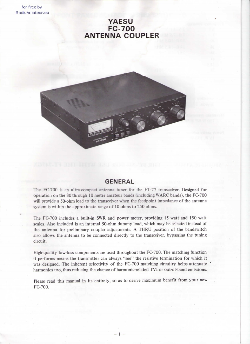 八重洲Yaesu_FC-700_user操作说明书手册找手册网33天前发布关注私信2.78MB11页038八重洲Yaesu_FC-700_user操作说明书手册此内容为付费资源,请付费后查看¥19¥21黄金会员免费钻石会员免费登录购买付费资源 第1页 / 共11页 第2页 / 共11页 第3页 / 共11页 第4页 / 共11页 第5页 / 共11页 试读已结束,还剩6页,您可下载完整版后进行离线阅读 THE END八重洲 文本预览 INSTRUCTIONMANUALFC-700YAESU MUSEN CO.,LTD.Downloaded byC.P.0.B0X1500RadioAmateur.EUTOKYO.JAPAN 查看更多 收起部分 喜欢就支持一下吧收藏