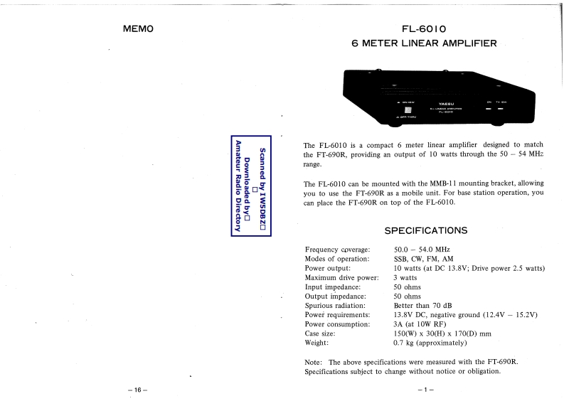 INSTRUCTIONMANUALFL-6010MAESAmateur RadioScannedDirectoryDownloaded byYAESU ELECTRONICS CORP.P.0.B0X49PARAMOUNT,CA 90723U.5.A.YAESU MUSEN CO.,LTD.CP,9.B0X1500YAESU日106-RP附NTED IN JAPANTOKYO,JAPAN