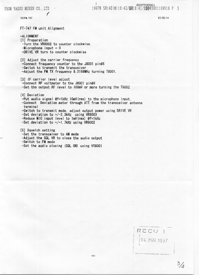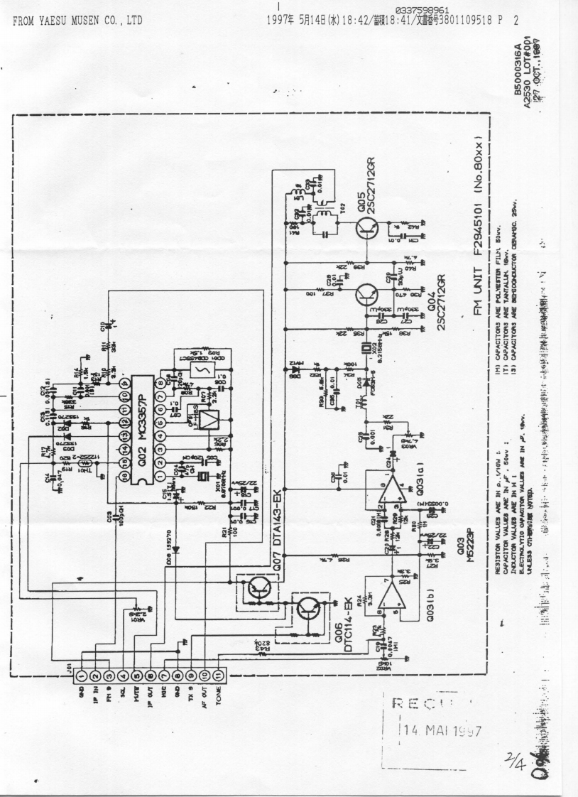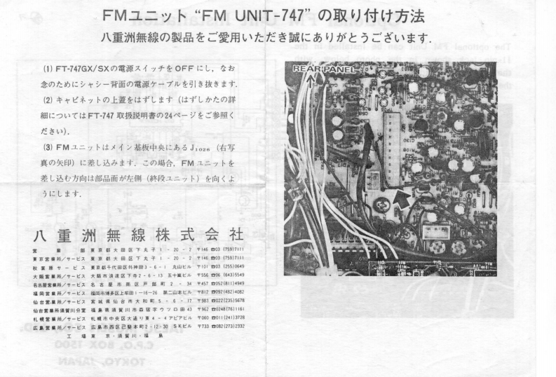 Optional FM Unit Installation7The optional FM Unit can be installed in the11-pin jack shown in the photo below,withthe component side of the board facing tothe left.REARPANELC02C336P07TA43E25c2720FM UNIT F2945101 INo.80xx)YAESU MUSEN CO.,LTD.C.P.0.B0X1500TOKYO,JAPAN