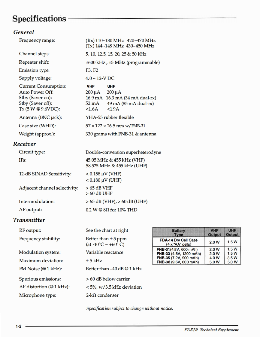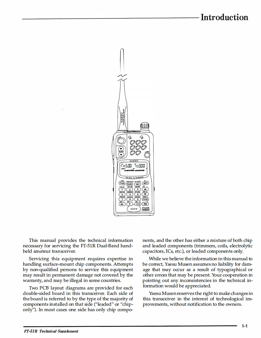 FT-51RTechnical Supplement9Q0220YAESU MUSEN CO.,LTD.006C.P.O.Box 1500,Tokyo,Japan¥A写Uw5003300YAESU U.S.A.17210 Edwards Rd.,Cerritos,California 90703U.S.A.YAESU EUROPE B.V.Snipweg 3.1118DN Schiphol,The Netherlands高YAESU UK LTD.普Unit 2,Maple Grove Business CentreLawrence Rd.,Hounslow,Middlesex TW4 6DR,UK