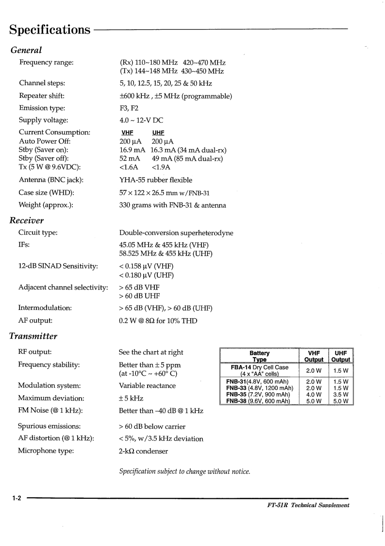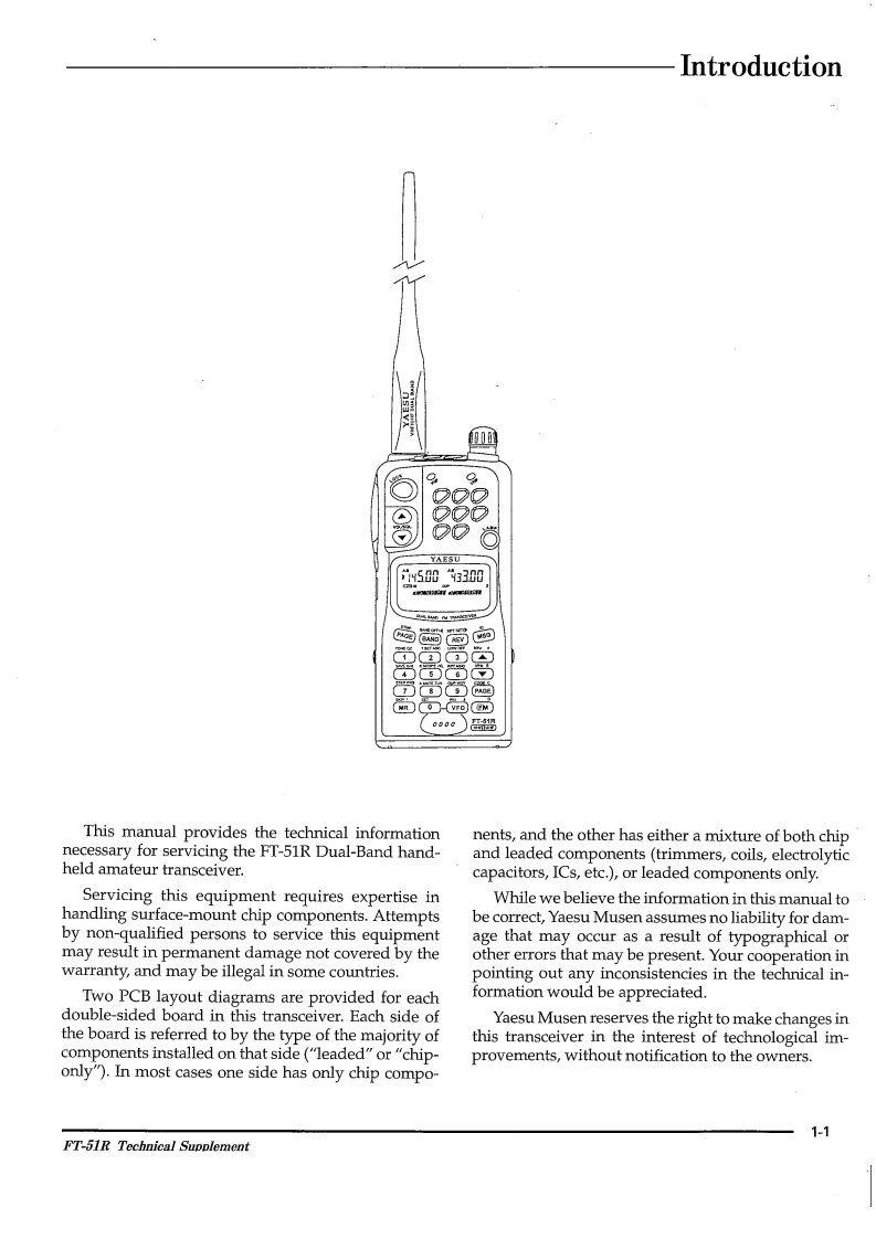FT-51RTechnical SupplementnYAESU MUSEN CO.,LTD.C.P.O.Box 1500,Tokyo,JapanYA玉Ur50g30YAESU U.S.A.17210 Edwards Rd.,Cerritos,California 90703U.S.A.YAESU EUROPE B.V.Snipweg 3.1118DN Schiphol,The Netherlands胸高YAESU UK LTD.Unit 2,Maple Grove Business CentreLawrence Rd.,Hounslow,Middlesex TW4 6DR,UK