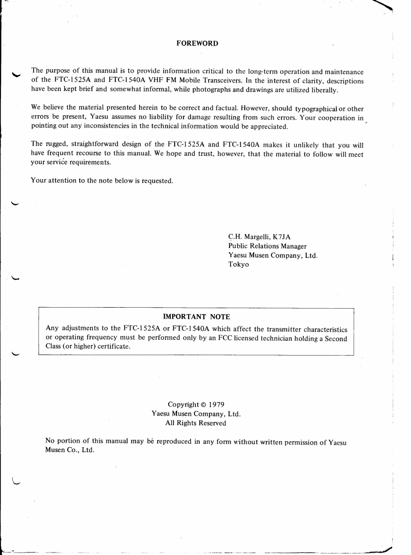 八重洲Yaesu_FTC-1510_FTC-1525_FTC-1540_FTC-1552_serv维修手册含电器原理图找手册网32天前发布关注私信68.14MB70页024八重洲Yaesu_FTC-1510_FTC-1525_FTC-1540_FTC-1552_serv维修手册含电器原理图此内容为付费资源,请付费后查看¥19¥21黄金会员免费钻石会员免费登录购买付费资源 第1页 / 共70页 第2页 / 共70页 第3页 / 共70页 第4页 / 共70页 第5页 / 共70页 试读已结束,还剩65页,您可下载完整版后进行离线阅读 THE END八重洲 文本预览 MAINTENANCESERVICE MANUALFTC-1525A/1540AYAESUYAESU MUSEN CO.,LTD.C.P.0.B0X1500TOKYO.JAPANYAESU ELECTRONICS CORP.P.0.B0X498PARAMOUNT,CALIFORNIA,90723 查看更多 收起部分 喜欢就支持一下吧收藏