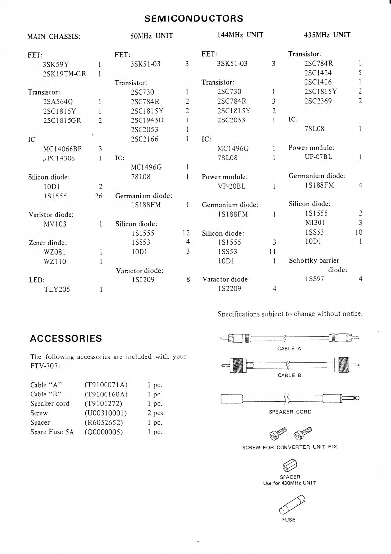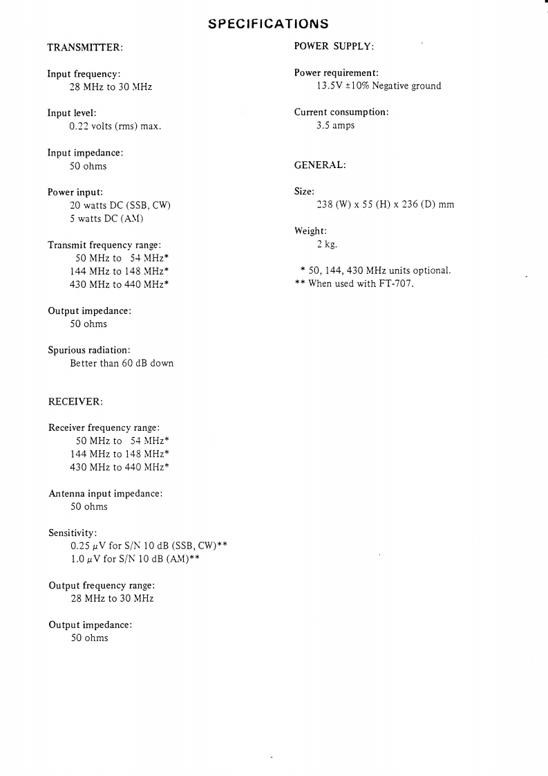 INSTRUCTIONMANUALFTV-707For Service ManualsMAURITRON SERVICES8Cherry Tree Rond,ChinOxfordshire,OX9 4QYTc101844)35169Fax01844352554email:-sales@mauritron.co.ukYAESU MUSEN CO.,LTD.TOKYO JAPAN