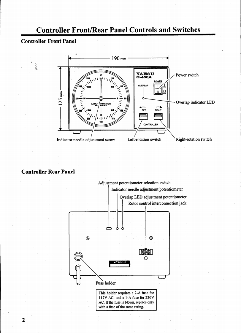 下AESUG-450AG-650AG-1000AAntenna Rotator ControllerUser ManualVERTEX STANDARD CO.,LTD.4-8-8 Nakameguro,Meguro-Ku,Tokyo 153-8644,JapanVERTEX STANDARDUS Headquarters17210 Edwards Rd.,Cerritos,CA 90703,U.S.A.International Division8350 N.W.52nd Terrace,Suite 201,Miami,FL33166,U.S.AYAESU EUROPE B.V.P.O.Box 75525,1118 ZN Schiphol,The NetherlandsYAESU UK LTD.Unit 12,Sun Valley Business Park,Winnall CloseWinchester,Hampshire,SO23 OLB,U.K.YAESU GERMANY GmbHAm Kronberger Hang 2,D-65824 Schwalbach,GermanyYAESU HK LTD.11th Floor Tsim Sha Tsui Centre,66 Mody Rd.,Tsim Sha Tsui East,Kowloon,Hong Kong