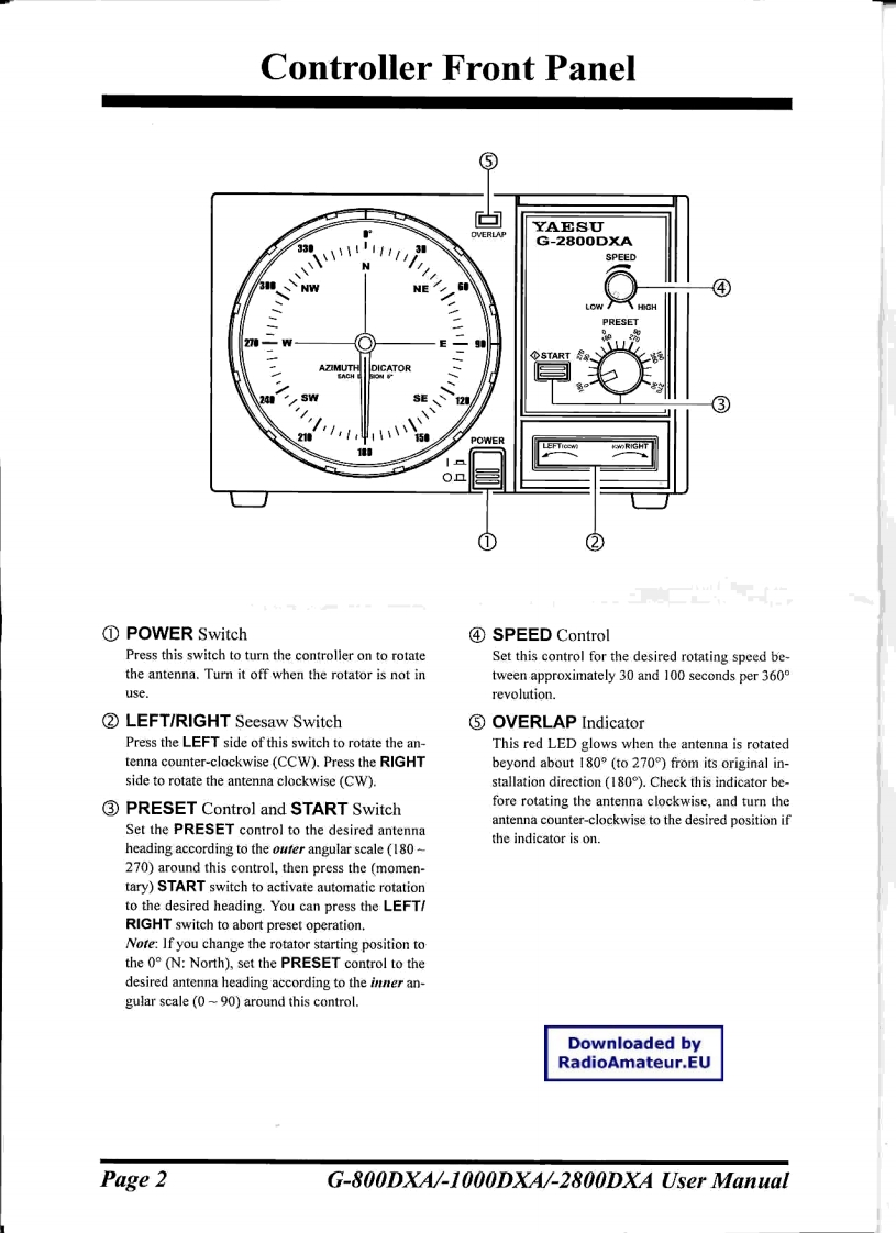 YAESUG-800DXAG-1000DXAG-2800DXAAntenna Rotator ControllerUser ManualVERTEX STANDARD CO.,LTD.4-B-8 Nakameguro.Meguro-Ku.Tokyo 153-8644,JapanVERTEX STANDARDUS Headquarters17210 Edwards Rd.,Cerritos.CA 90703.U S.AInternational Division8350 N.W.52nd Terrace,Suite 201.Miami,FL 33166.U.S.AYAESU EUROPE B.V.P.O.Box 75525,1118 ZN Schiphol,The NetherlandsYAESU UK LTD.Unit 12.Sun Valey Business Park,Winnall CloseWinchester,Hampshire,S023 OLB.U.KYAESU GERMANY GmbHAm Kronberger Hang 2.D-65824 Schwaibach.GermanyDownloaded byYAESU HK LTD.RadioAmateur.EU11th Floor Tsim Sha Tsui Centre.66 Mody Rd.Tsim Sha Tsui East,Kowloon.Hong Kong
