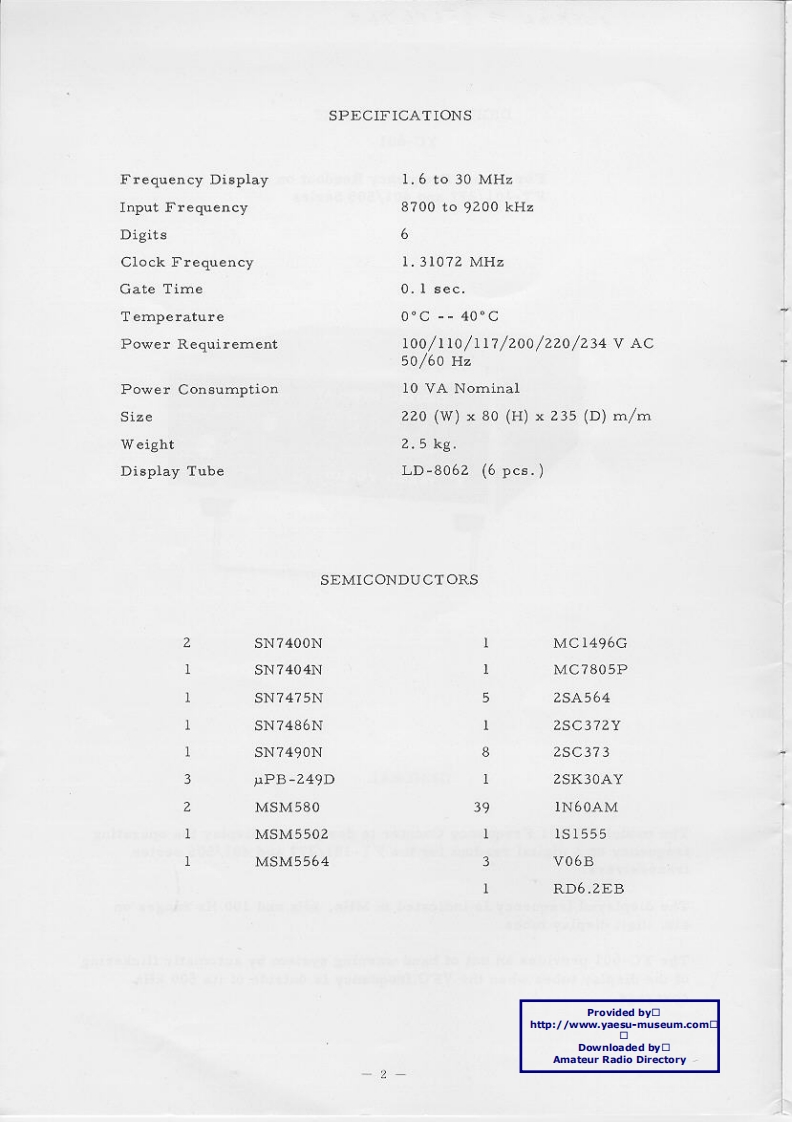 八重洲Yaesu_YC-601_user操作说明书手册找手册网32天前发布关注私信5.62MB16页023八重洲Yaesu_YC-601_user操作说明书手册此内容为付费资源,请付费后查看¥19¥21黄金会员免费钻石会员免费登录购买付费资源 第1页 / 共16页 第2页 / 共16页 第3页 / 共16页 第4页 / 共16页 第5页 / 共16页 试读已结束,还剩11页,您可下载完整版后进行离线阅读 THE END八重洲 文本预览 INSTRUCTIONMANUALYc-601DIGITAL DISPLAY UNITProvided by▣http://www.yaesu-museum.comDownloaded byl▣Amateur Radio DirectoryYAESU MUSEN CO.,LTD.TOKYO JAPAN. 查看更多 收起部分 喜欢就支持一下吧收藏