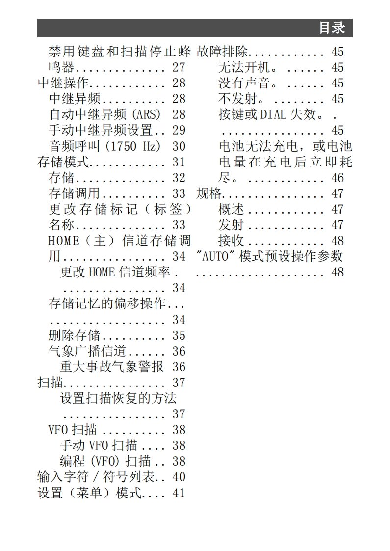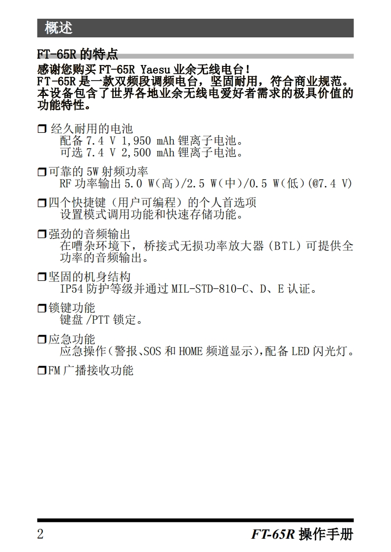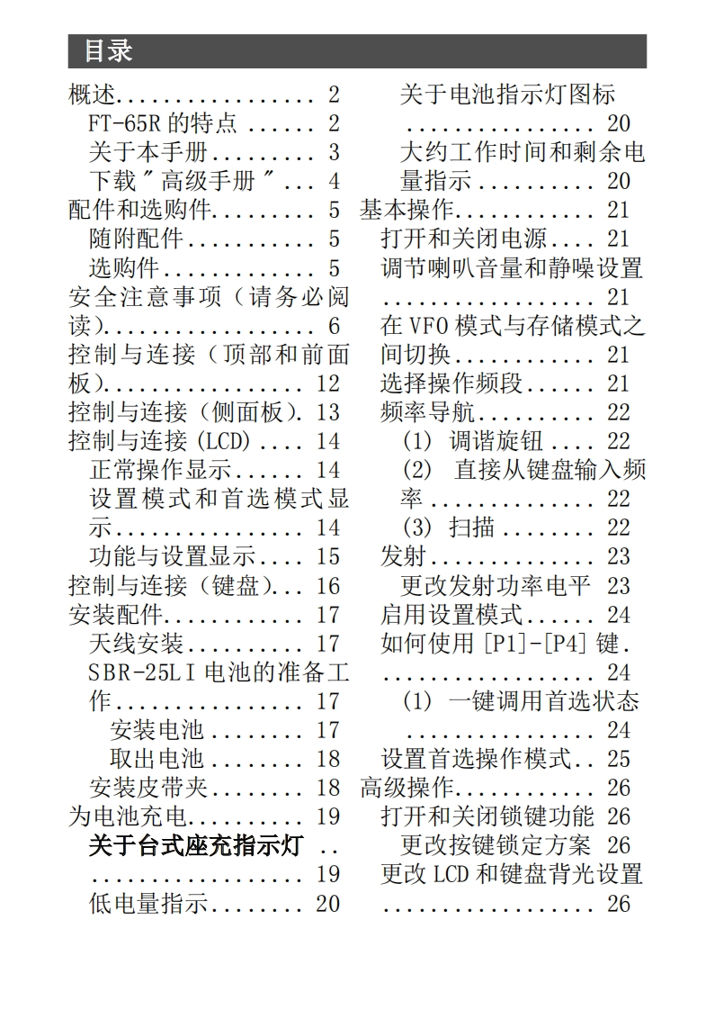 手册编号10:YAESU-FT-65R用户使用操作说明书手册找手册网32天前发布关注私信9.50MB52页037手册编号10:YAESU-FT-65R用户使用操作说明书手册此内容为付费资源,请付费后查看¥19¥21黄金会员免费钻石会员免费登录购买付费资源 第1页 / 共52页 第2页 / 共52页 第3页 / 共52页 第4页 / 共52页 第5页 / 共52页 试读已结束,还剩47页,您可下载完整版后进行离线阅读 THE END八重洲 文本预览 YAESUThe radio144/430MHz双频段调频电台FT-65R操作手册ADSC丁DUAL BAND TRANSCEIVERFT-65回446.500■■■■■■■P1P2P31P4102ABC3DEF4GHI 5JKL6MNO7PORS 8TUV9wxYZ米VIMOSET #BAND 查看更多 收起部分 喜欢就支持一下吧收藏