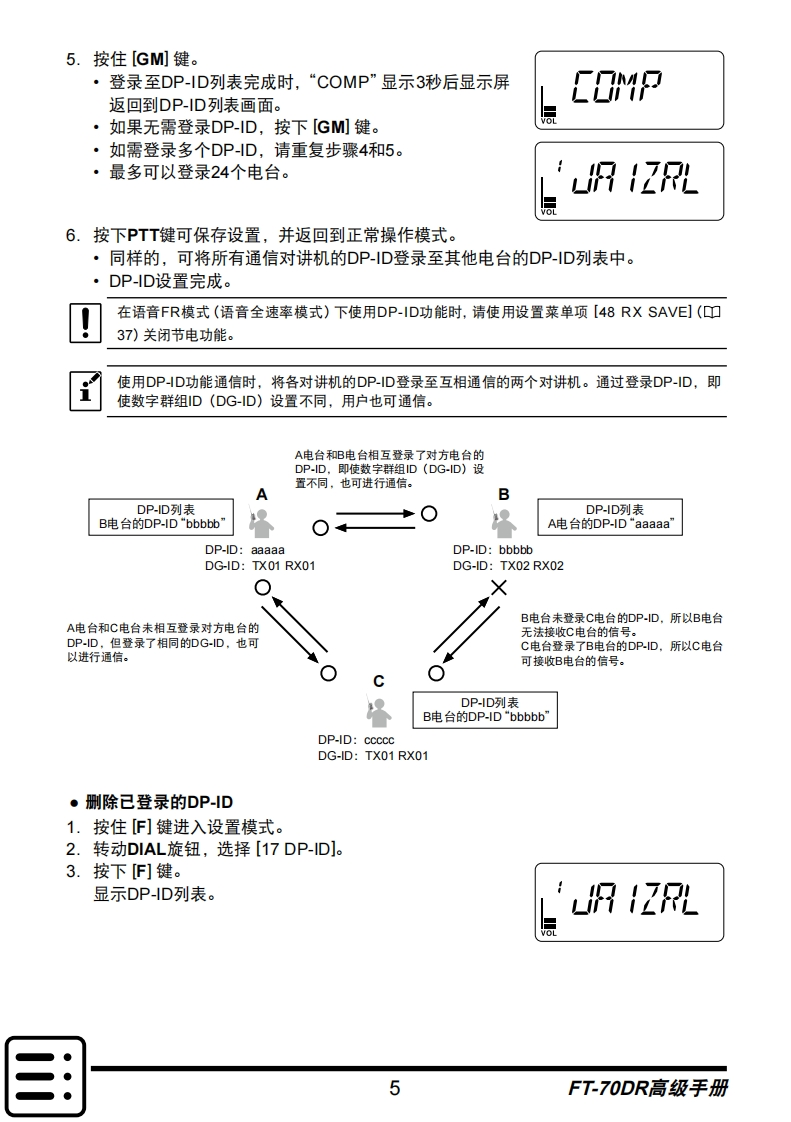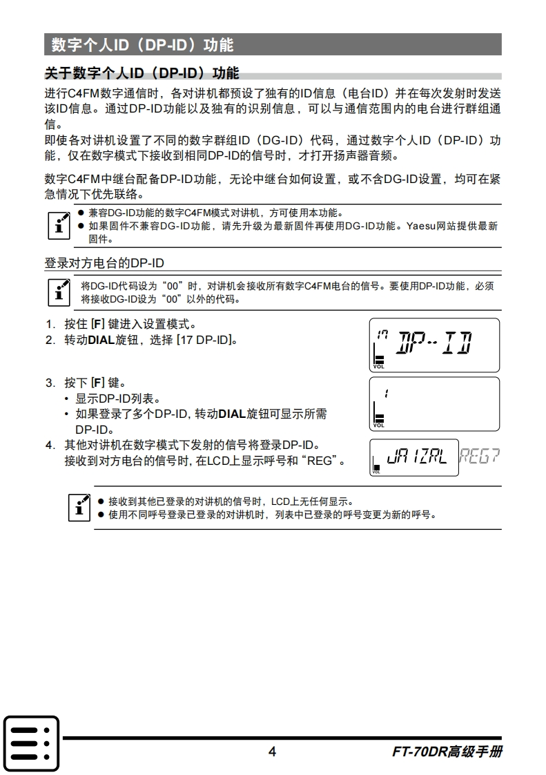 手册编号11:YAESU-FT-70DR高级用户使用操作说明书手册找手册网33天前发布关注私信6.80MB45页040手册编号11:YAESU-FT-70DR高级用户使用操作说明书手册此内容为付费资源,请付费后查看¥19¥21黄金会员免费钻石会员免费登录购买付费资源 第1页 / 共45页 第2页 / 共45页 第3页 / 共45页 第4页 / 共45页 第5页 / 共45页 试读已结束,还剩40页,您可下载完整版后进行离线阅读 THE END八重洲 文本预览 YAESUradioC4FM/FM 144/430MHz数字/模拟对讲机FT-70DR高级手册YAESU45500.ag君DigitalFT-70DAMSTX POSCANDTMND DNMODE 1 2ABC 3 DLF BANDHMRy 4GHa 5ac.6vvo V/Ma788w980任何时候点击当前浏览页左下角的国将返回目录页。 查看更多 收起部分 喜欢就支持一下吧收藏